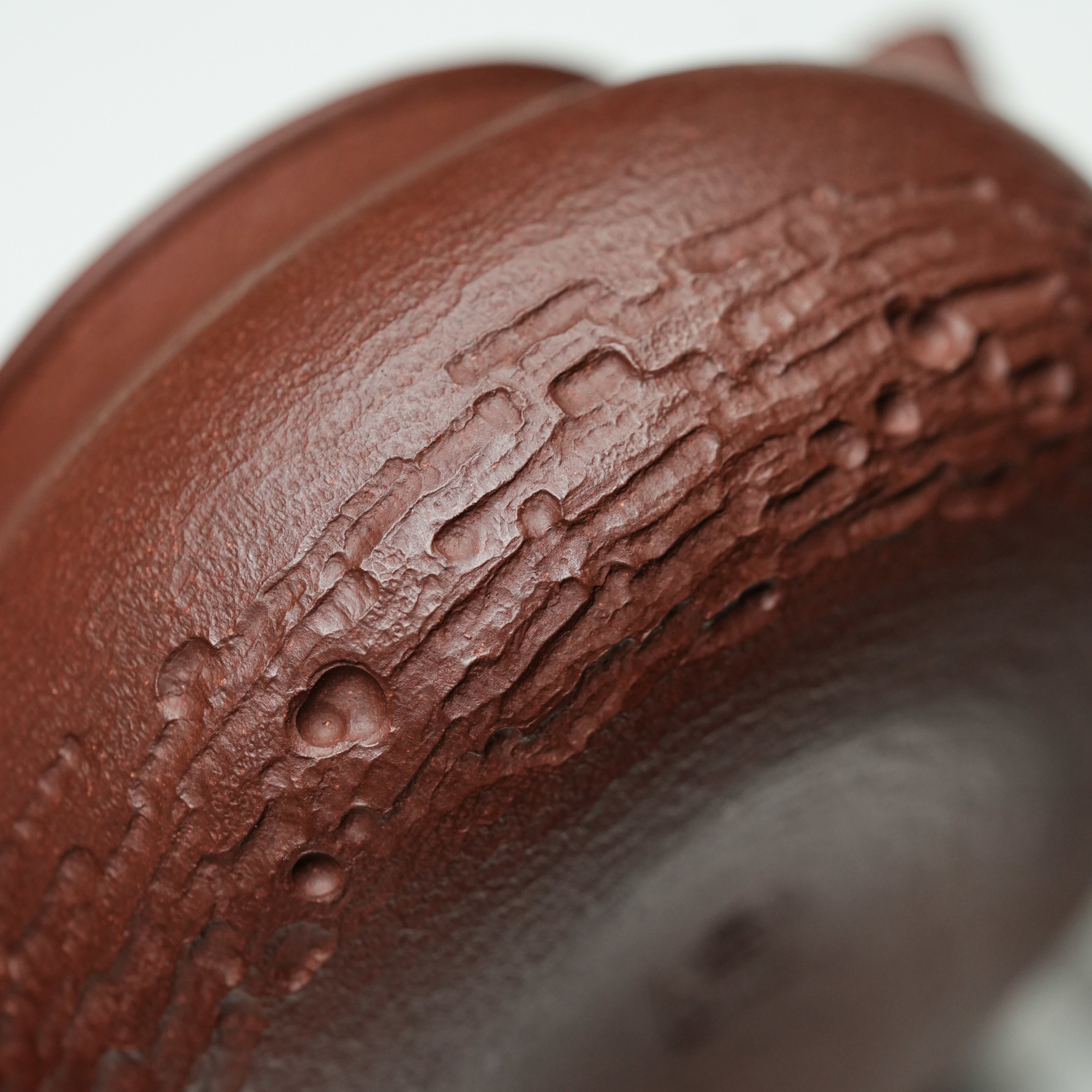 This teapot is a beautifully crafted piece that immediately stands out as both functional and artistic. Designed to resemble natural wood, it has an organic, sculptural quality that makes it feel like a miniature piece of nature brought indoors. The surface features intricate textures and carved details—twisting branches, subtle grooves, and flowing shapes—that give it a rustic, handmade charm.