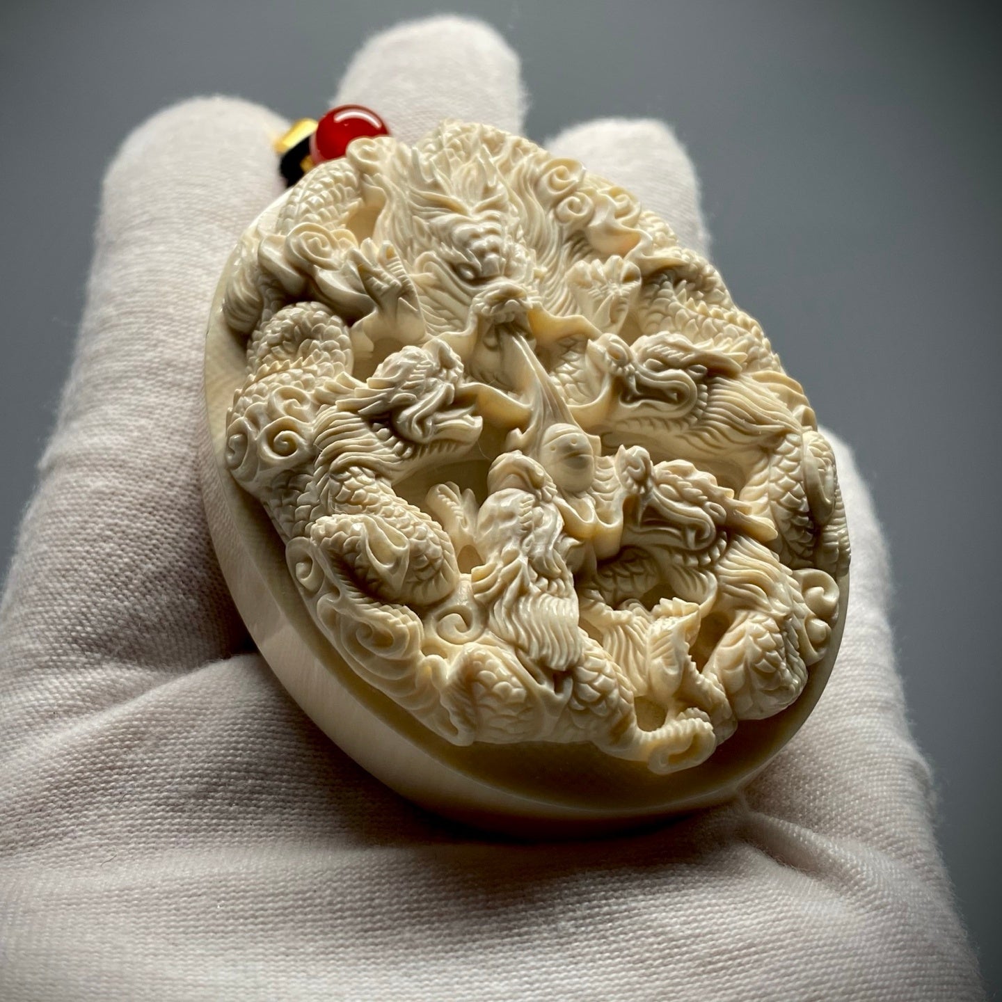 Beautifully carved mammoth ivory pendant with stunning dragon and phoenix details. The fossil grain looks natural and elegant, and the piece feels solid and well-crafted. Exactly as pictured and carefully packaged — highly recommended. Moreover,customer service was excellent — responsive, professional, and very helpful throughout the entire process.