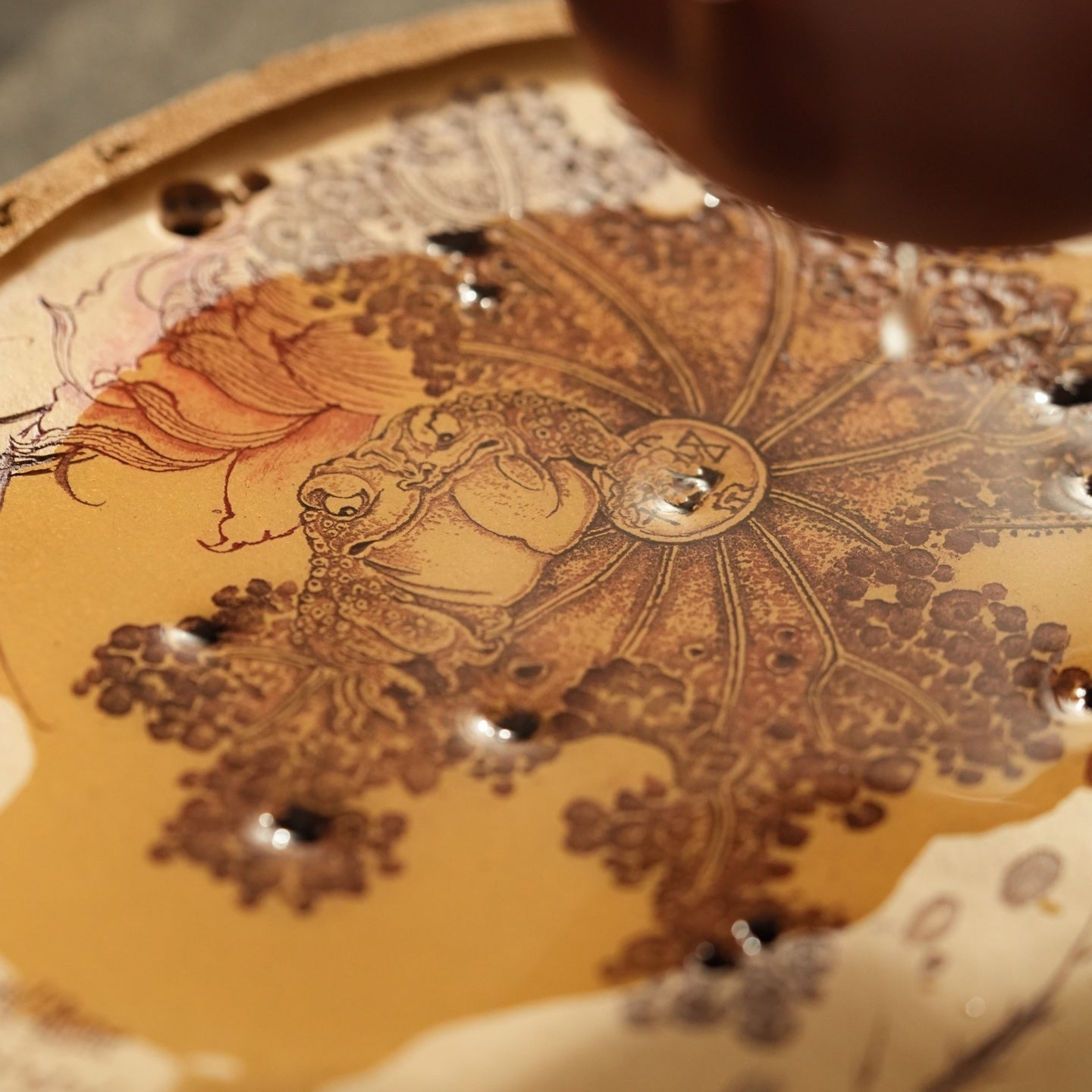 The lotus wind enters the tea table, and the golden toad is blessed.
