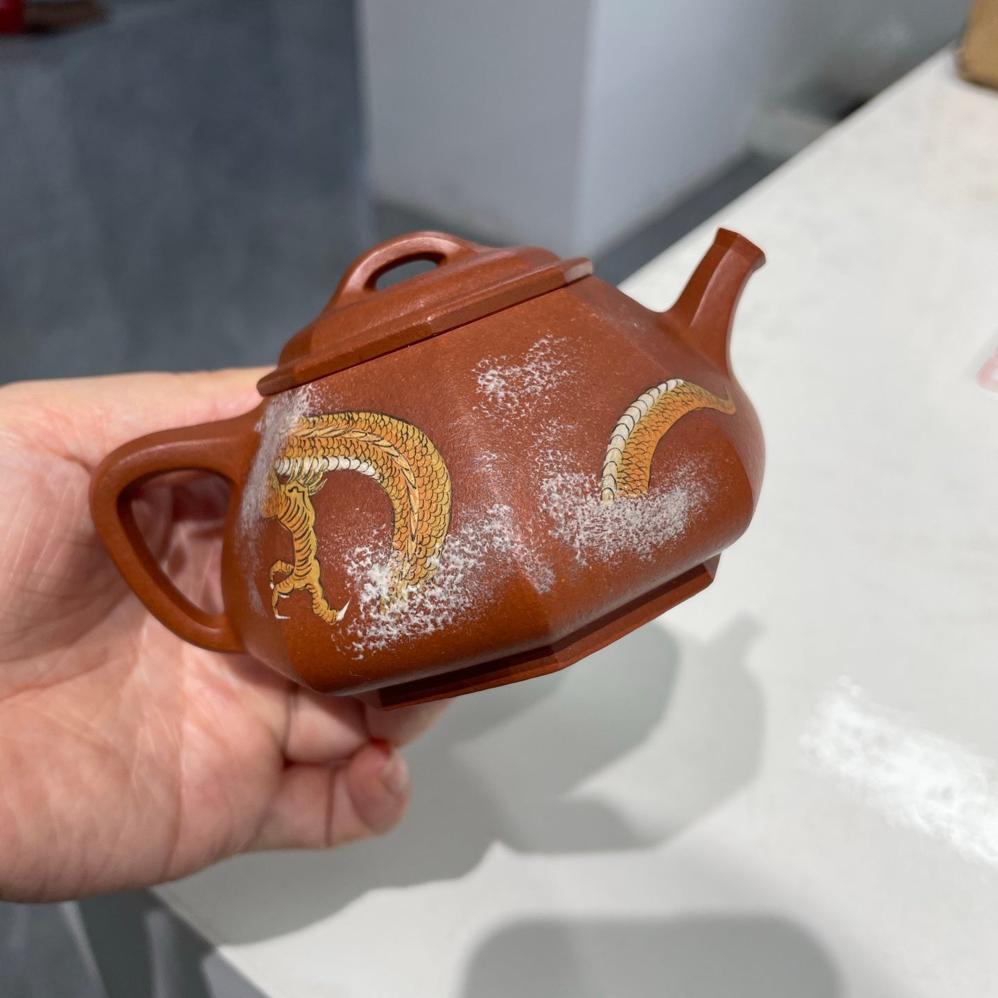 【Avoid chemical cleaners】: The tea scale on the outer wall must be cleaned by wiping with warm water. Do not use baking soda or other chemical cleaners, which will corrode the patina on the surface of the teapot and damage the purple clay teapot.