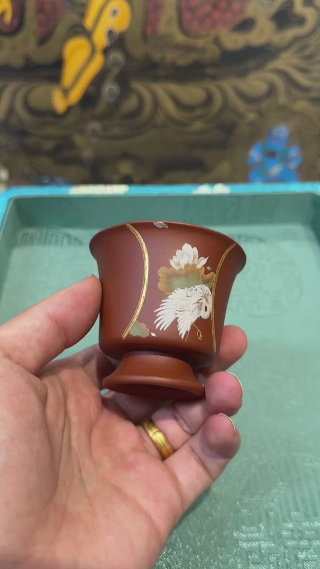 白鷺亭亭立在蓮間,羽翼蓬鬆得彷彿能看清紋理,金線條勾勒出雅緻輪廓,一鷺蓮生的寓意,把禪意和溫柔都揉進了茶器裡。