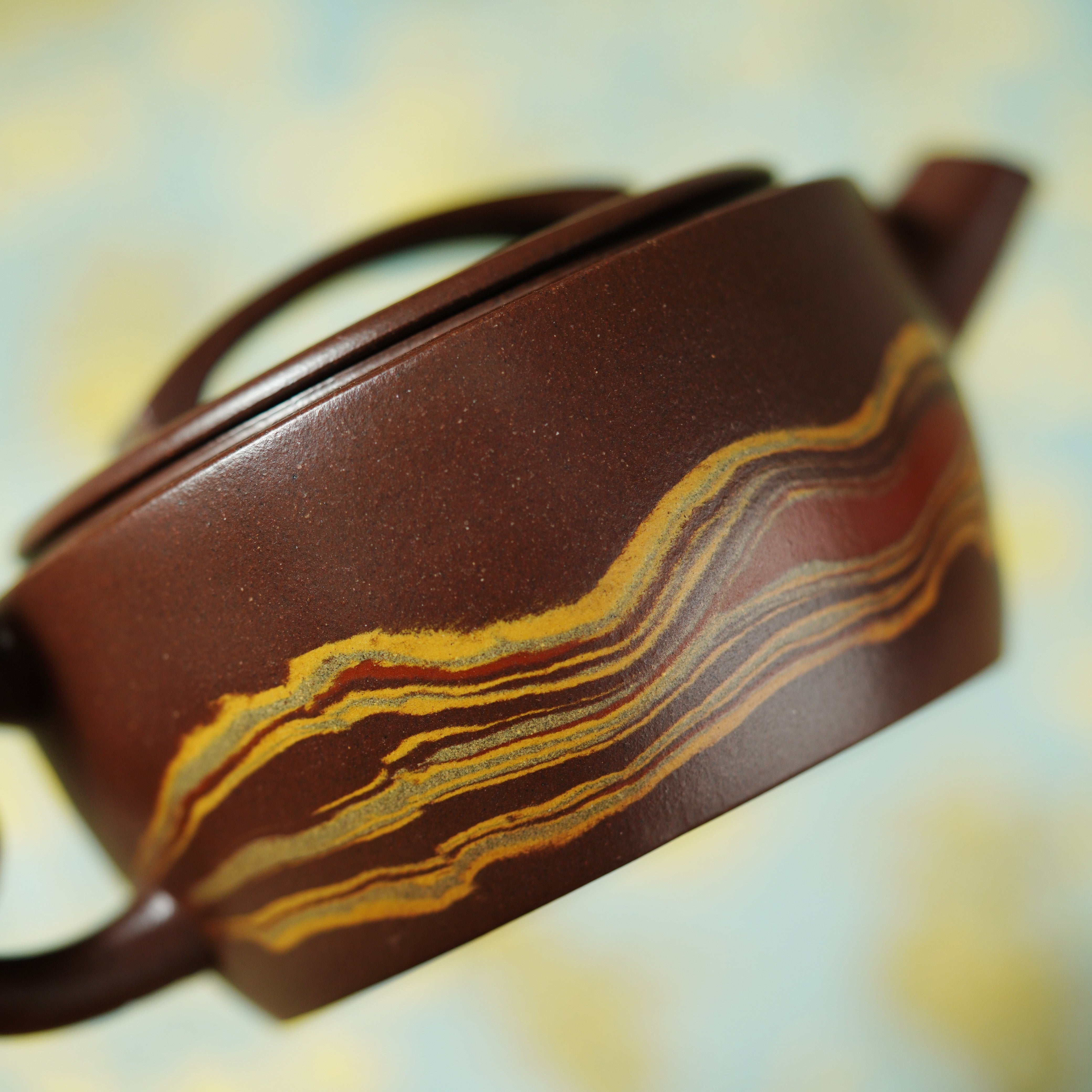 老紫泥是一種砂性重、透氣性好的紫砂泥料,燒製後呈棕紫色調,其獨特的雙氣孔結構能有效吸附茶香並釋放茶葉內含物質,​​使茶湯更醇厚。