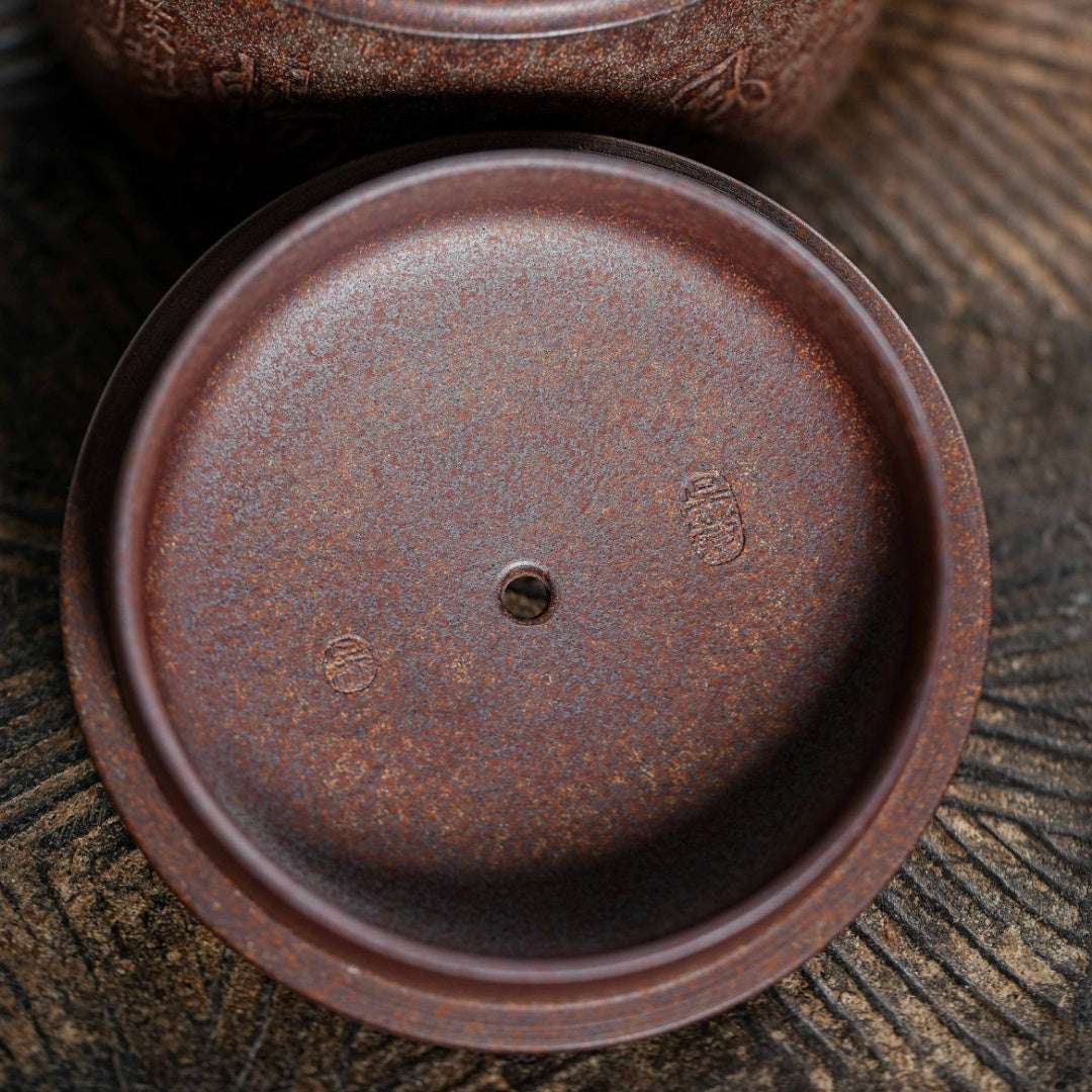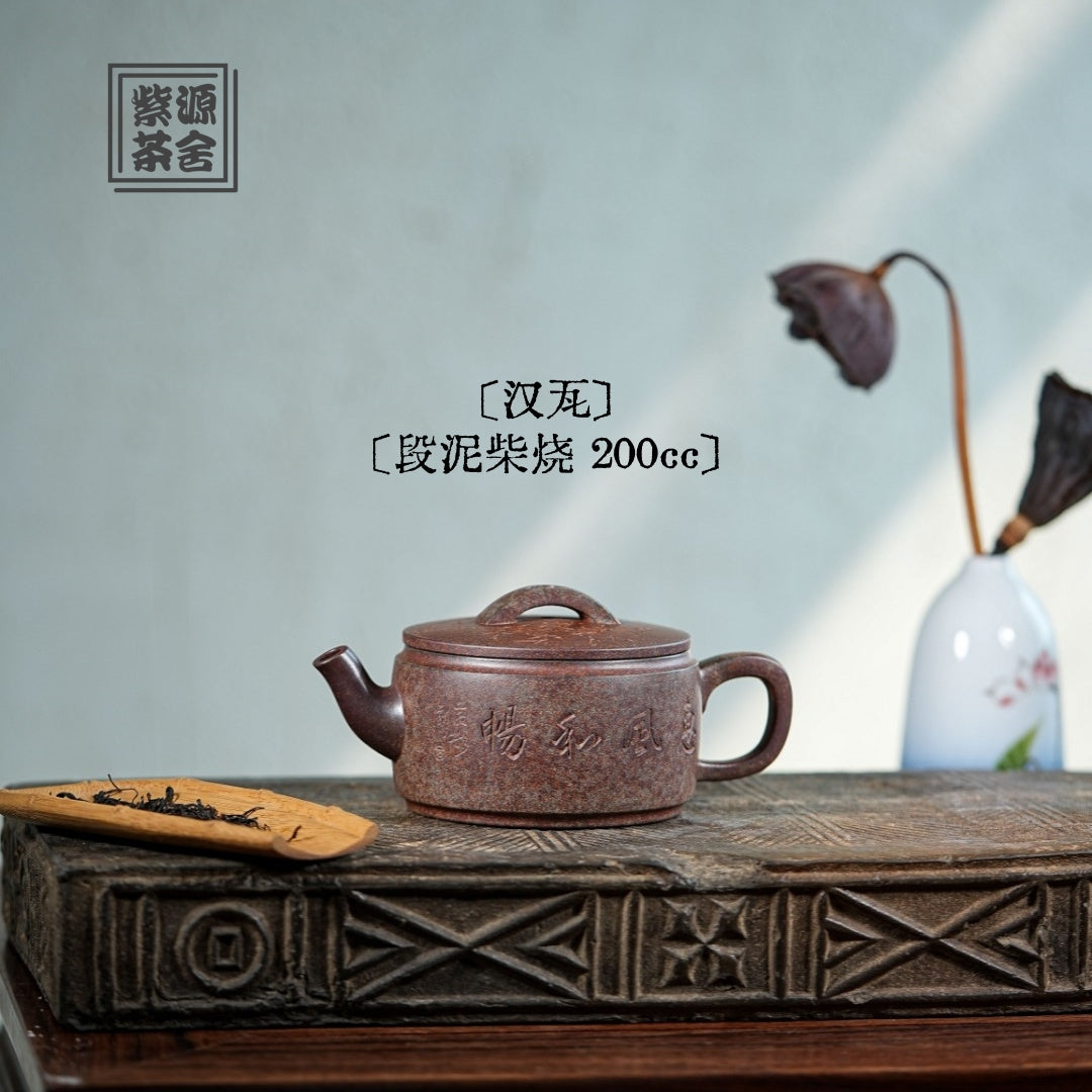 Inheriting the classic Han Wa shape, its simple and neat lines showcase a dignified and rustic charm. The 200cc capacity is a perfect balance, offering a warm and comfortable grip, suitable for brewing various teas. Made from carefully selected original Duan clay, it undergoes traditional wood-firing, where the natural ash from the kiln fire creates a unique glaze. The teapot's texture is delicate, possessing a warm and refined quality honed by time.