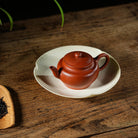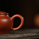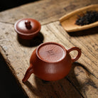 This Palace Lantern teapot is handcrafted from carefully selected Zhao Zhuang original Zhu Ni clay. The clay is a rich red color, with a fine and even texture, and a delicate, soft feel. After use, it develops a glossy sheen, and its patina is highly prized by teapot enthusiasts. The shape is that of a palace lantern, with full shoulders, a bulging belly tapering downwards, a short neck without a rim, and a tightly fitting lid with a high, upright knob. The shape complements the body of the teapot. The three-bend spout and delicate handle are exquisitely proportioned and harmonious, further enhancing the rounded and full shape of the body. This finely crafted teapot, made from superior materials, needs no additional decoration. Its concise lines and elegant charm are enough to make it stand out among other small Zhu Ni teapots. Its handsome and refined appearance, with its leisurely and graceful style, is unforgettable.