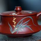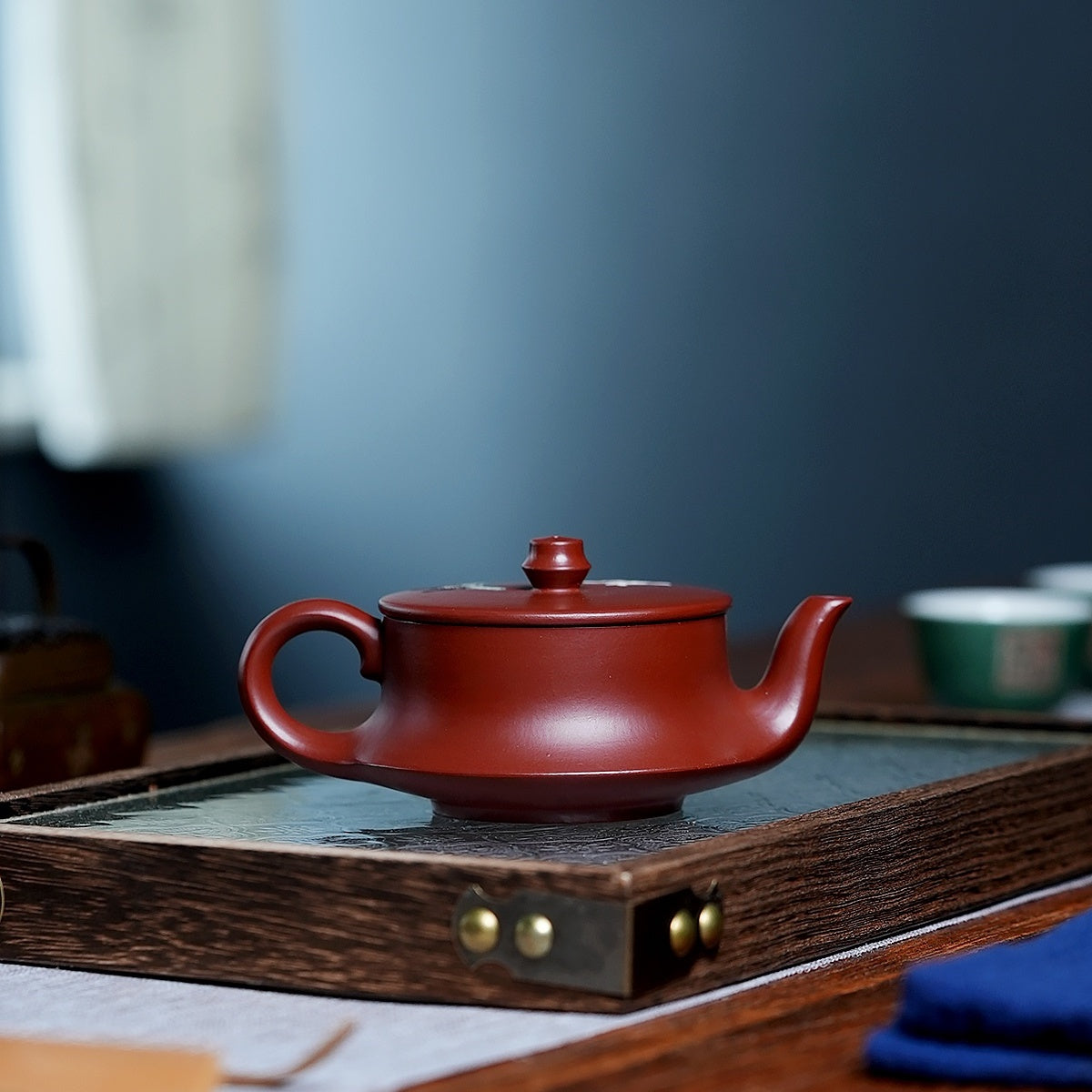 The Quhu is a highly praised teapot shape, inspired by a snail. The Da Hong Pao clay, with its warm, simple, and elegant color, fully showcases the rhythmic beauty of the Quhu's contours. The slightly upturned spout enhances the dynamic movement of the snail as it crawls. The teapot body is exquisite and elegant, with clean and crisp transitions between lines and surfaces, offering a unique charm for tea drinking.