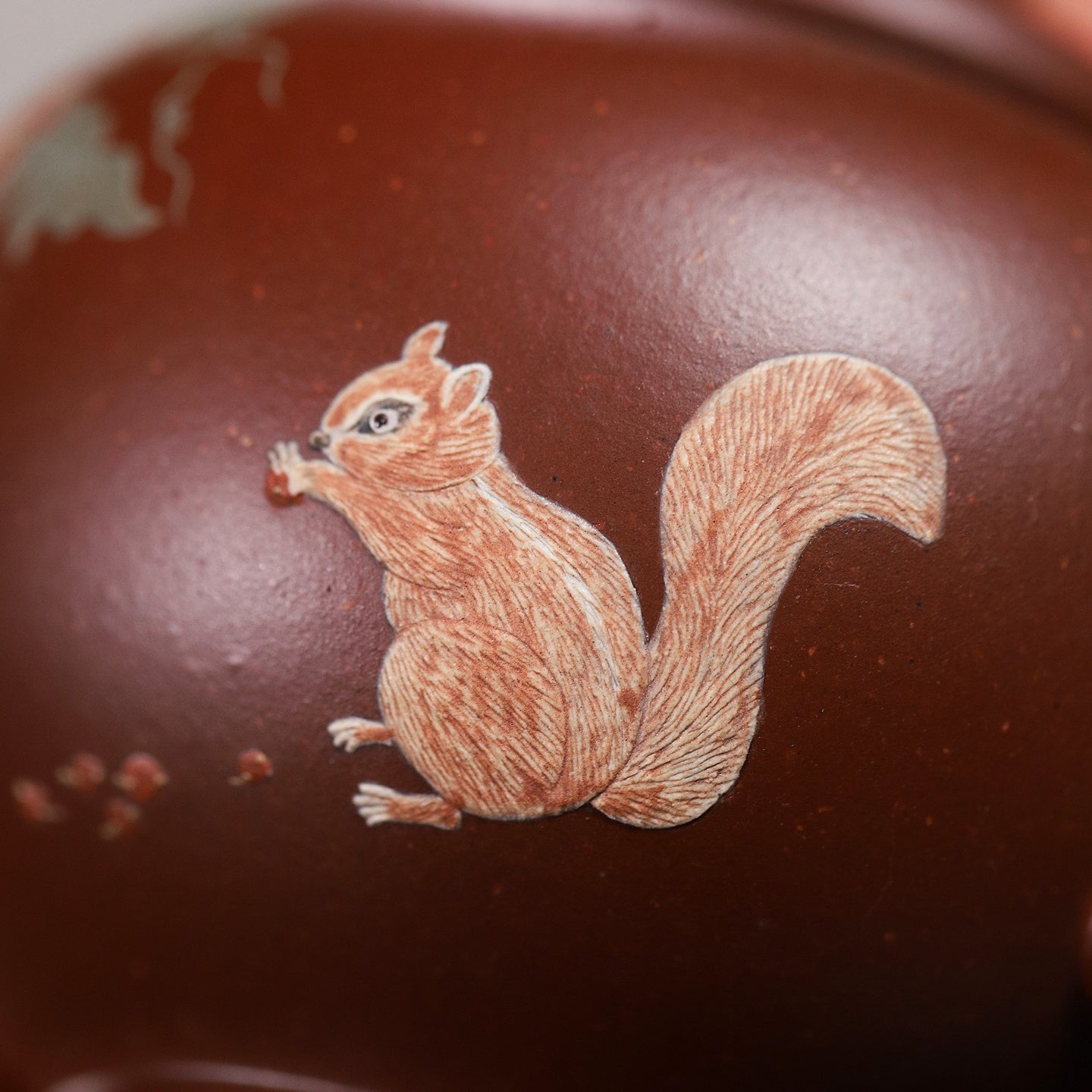 The pot body is full and very comfortable to hold in one hand. The pot body is painted with squirrels and grapes, and the words "Fruits" represent a rich harvest. How pleasant it is to use this pot to brew tea in your spare time!
