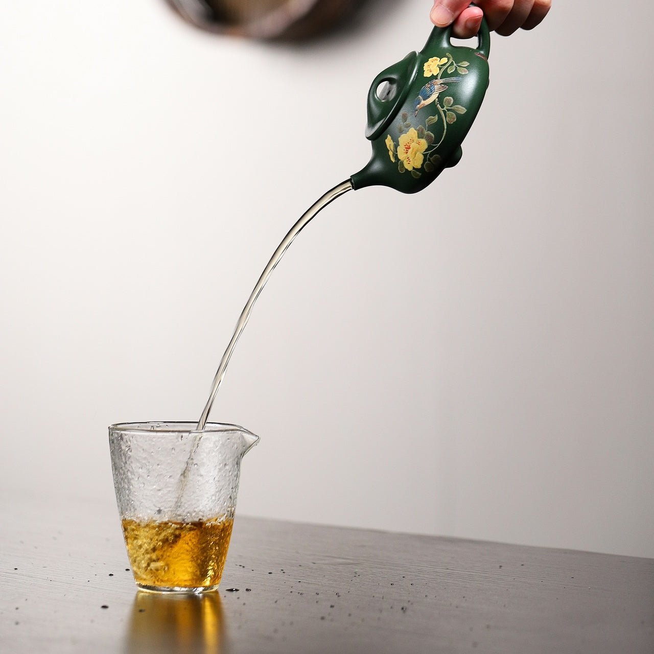 【Warm the teapot before use】: First pour 40-50 degree water, pick up the teapot, shake it, so that the teapot body is evenly heated, so that the teapot is warm, pour the water, then pour boiling water, shake it again, and pour it out. This process is to make the teapot body evenly heated and can clean and disinfect the teapot body by the way.