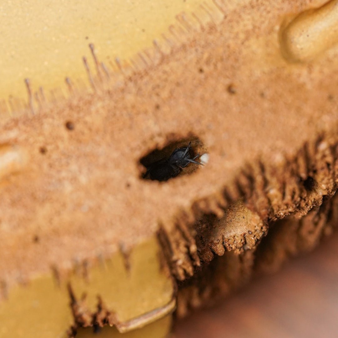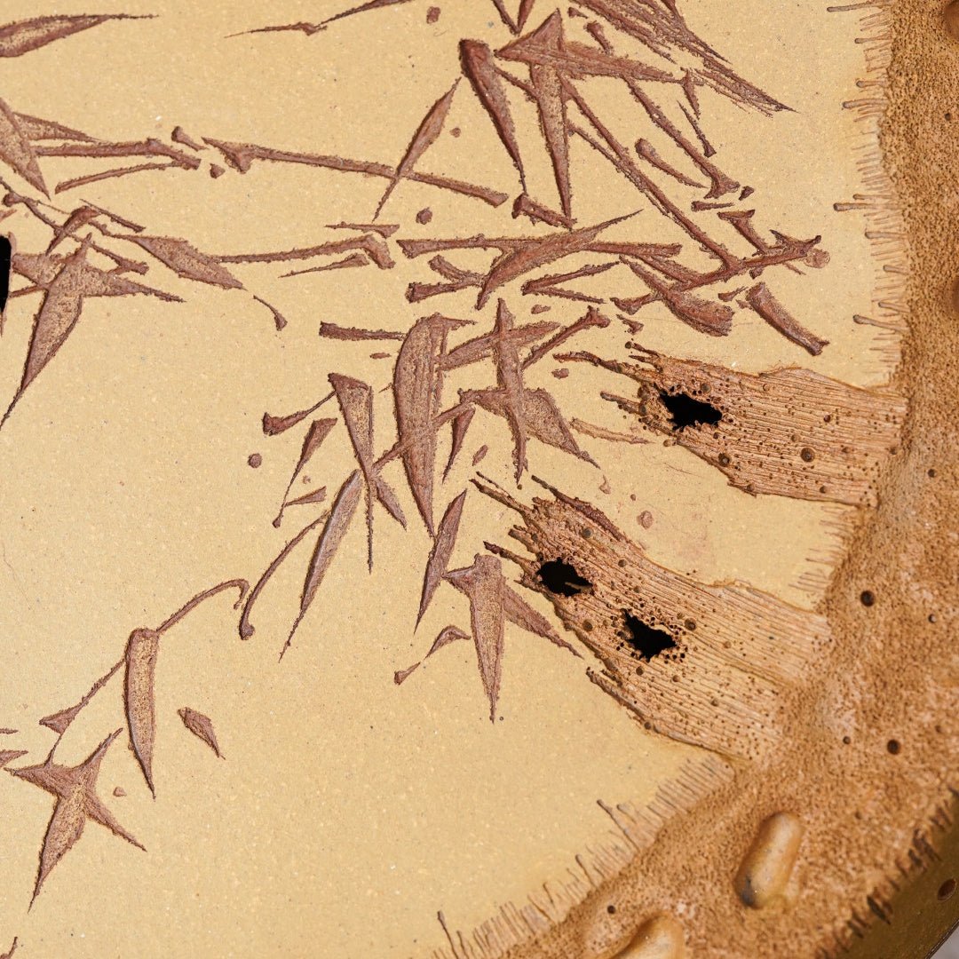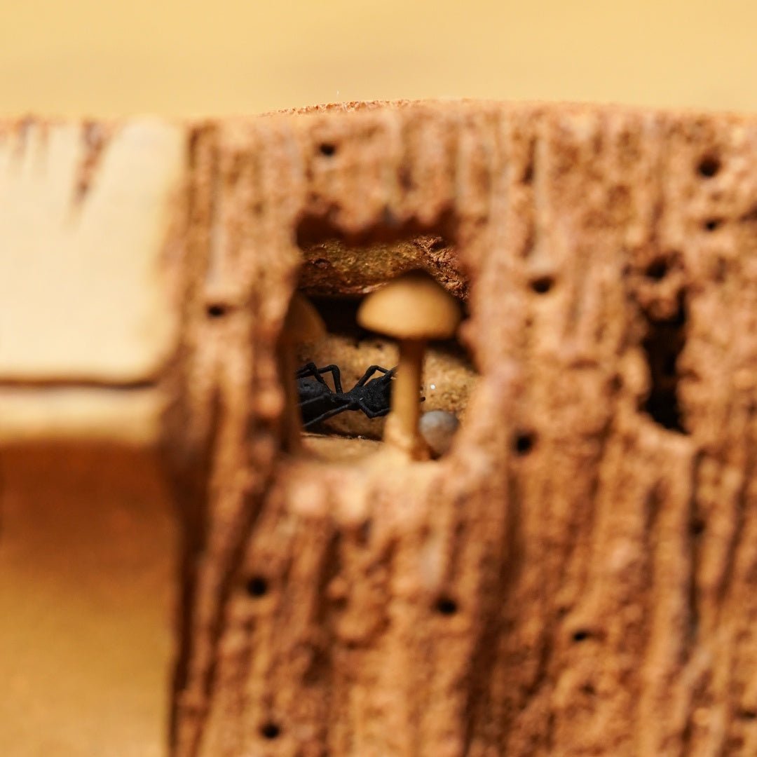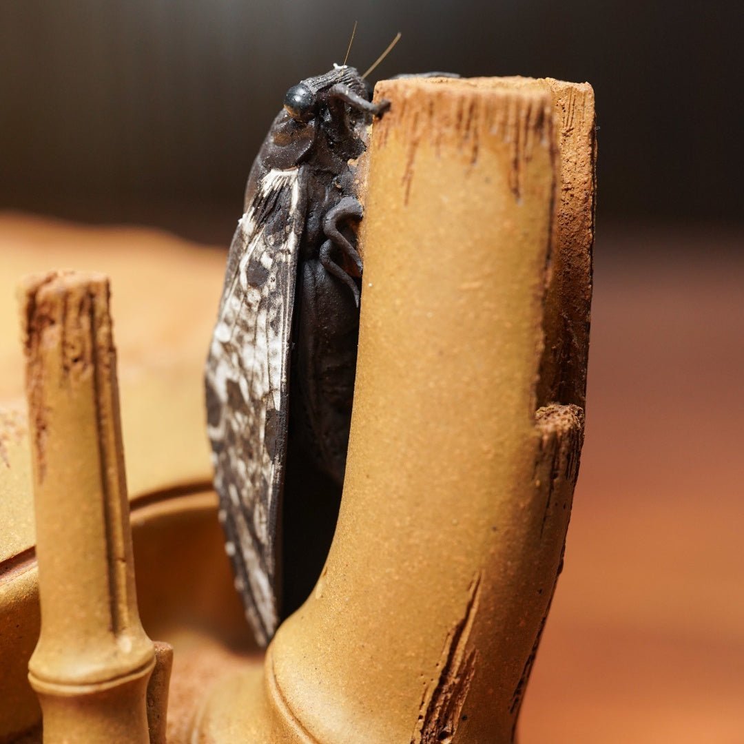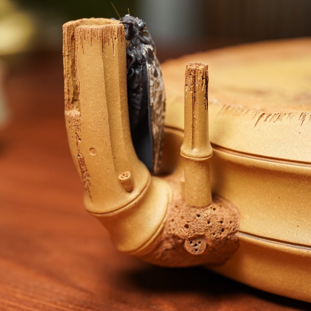 螞蟻攀過斑駁竹肌,小蘑菇從紫砂粗糲間探頭,傘蓋托起一粒水珠,那是天地初開的朝露。菌絲悄悄蔓延,在褶皺裡織出一張生命的網。