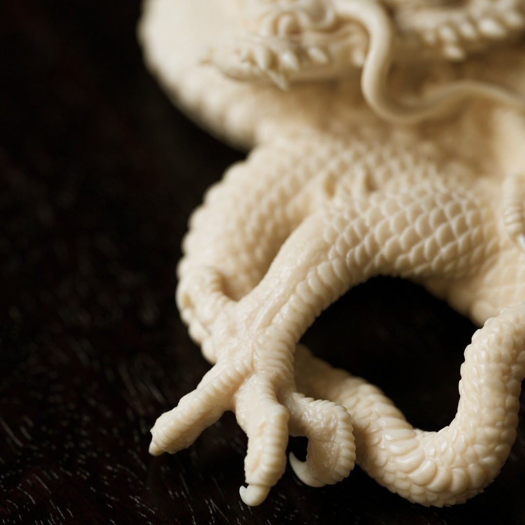 【Weight】56.8g A single stroke imbues the work with soul; entirely handcrafted, the knife becomes a brush, conveying a primordial spirit. The carving technique depicts an azure dragon breaking through the waves, its angry eyes cleaving the clouds, its whiskers flowing like the wind in Wu Daozi's style; its tail sweeps across the sea, its scales gleaming. Where the clouds lie on the water, the knife's edge turns sharply, its strength like the chiseling of metal and stone, its softness like the misty ink of water. The interplay of square and round elements perfectly embodies the philosophical concept of "a dragon hidden in the abyss, a dragon appearing in the field" from the Book of Changes.