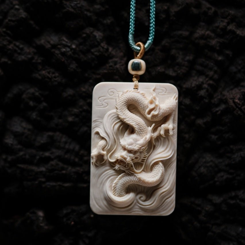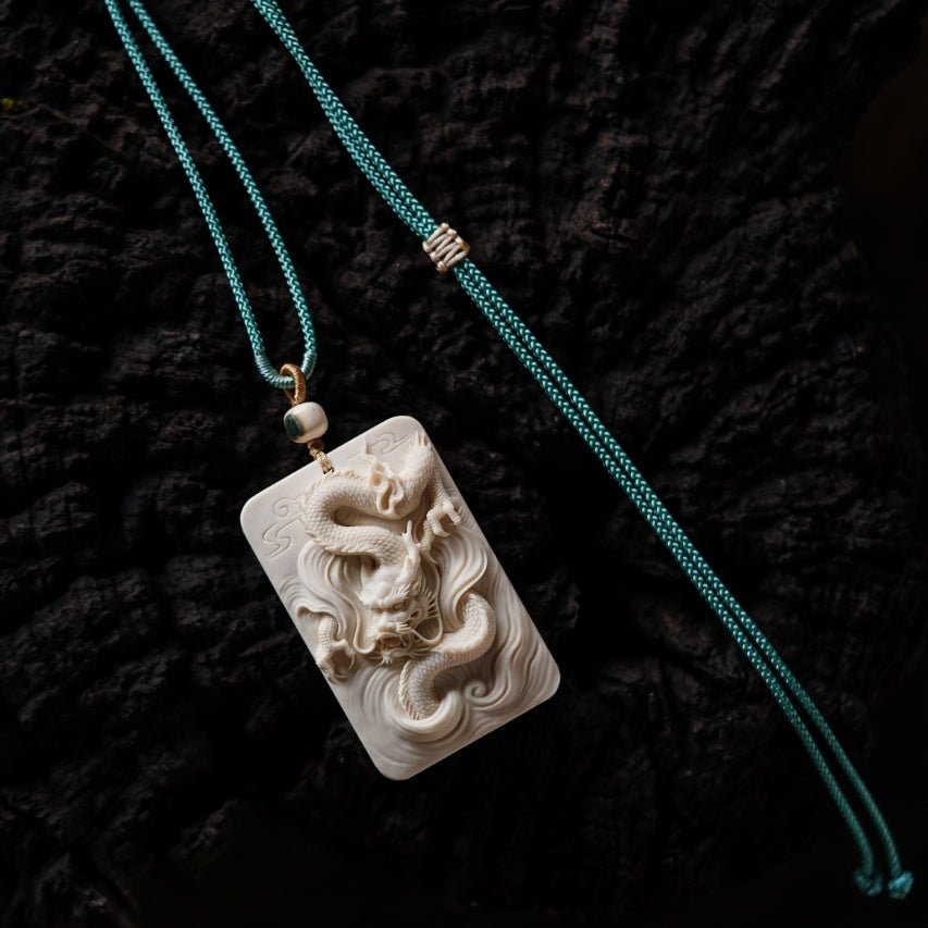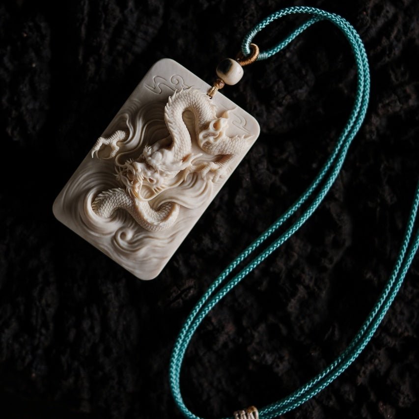 The ivory is warm and smooth like solidified fat, carved with a dragon emerging from the clouds. Its whiskers fly, its scales are layered, and its claws conceal power, seemingly carrying the force of wind and thunder. Worn as a pendant, it exudes a dignified yet restrained aura, naturally elegant and refined.