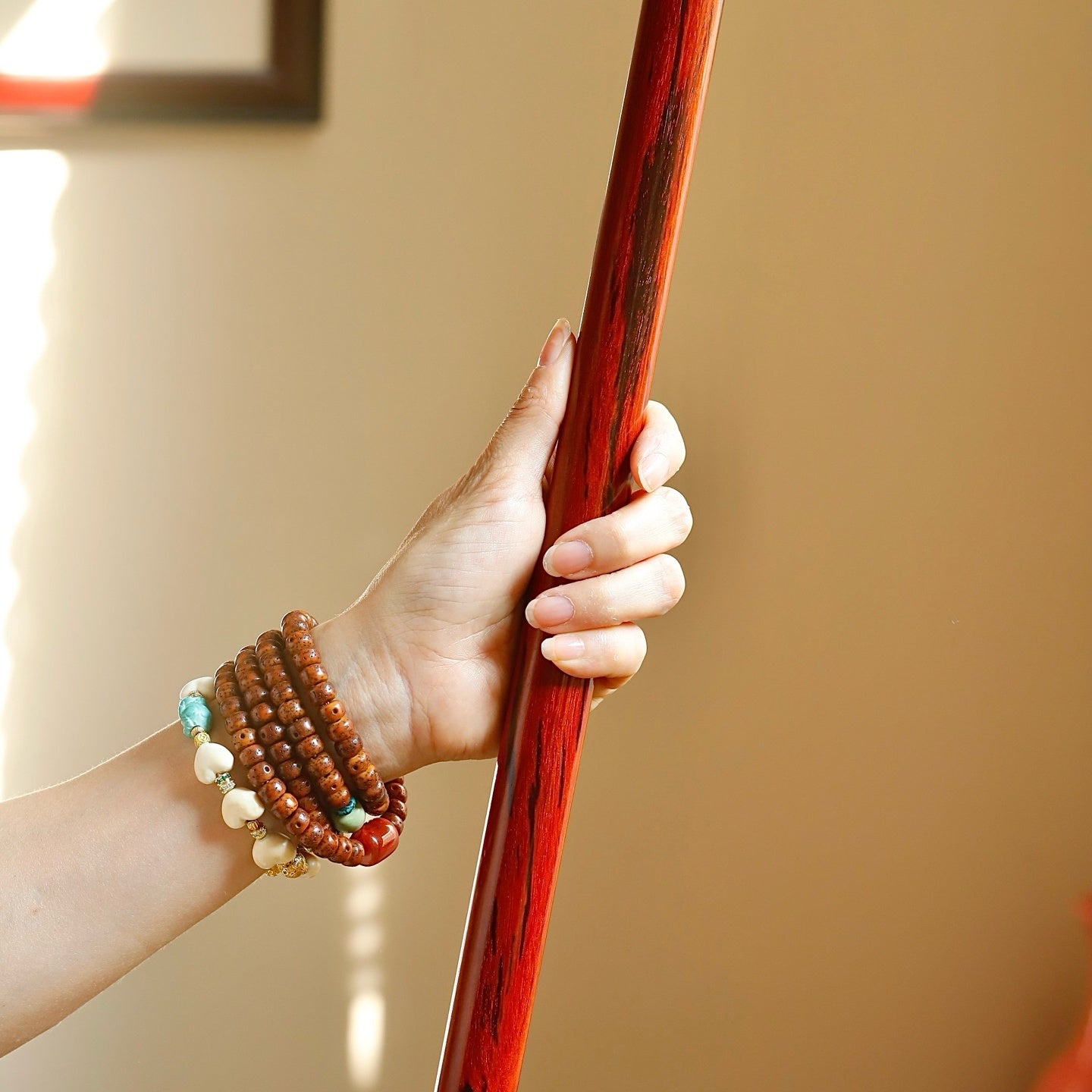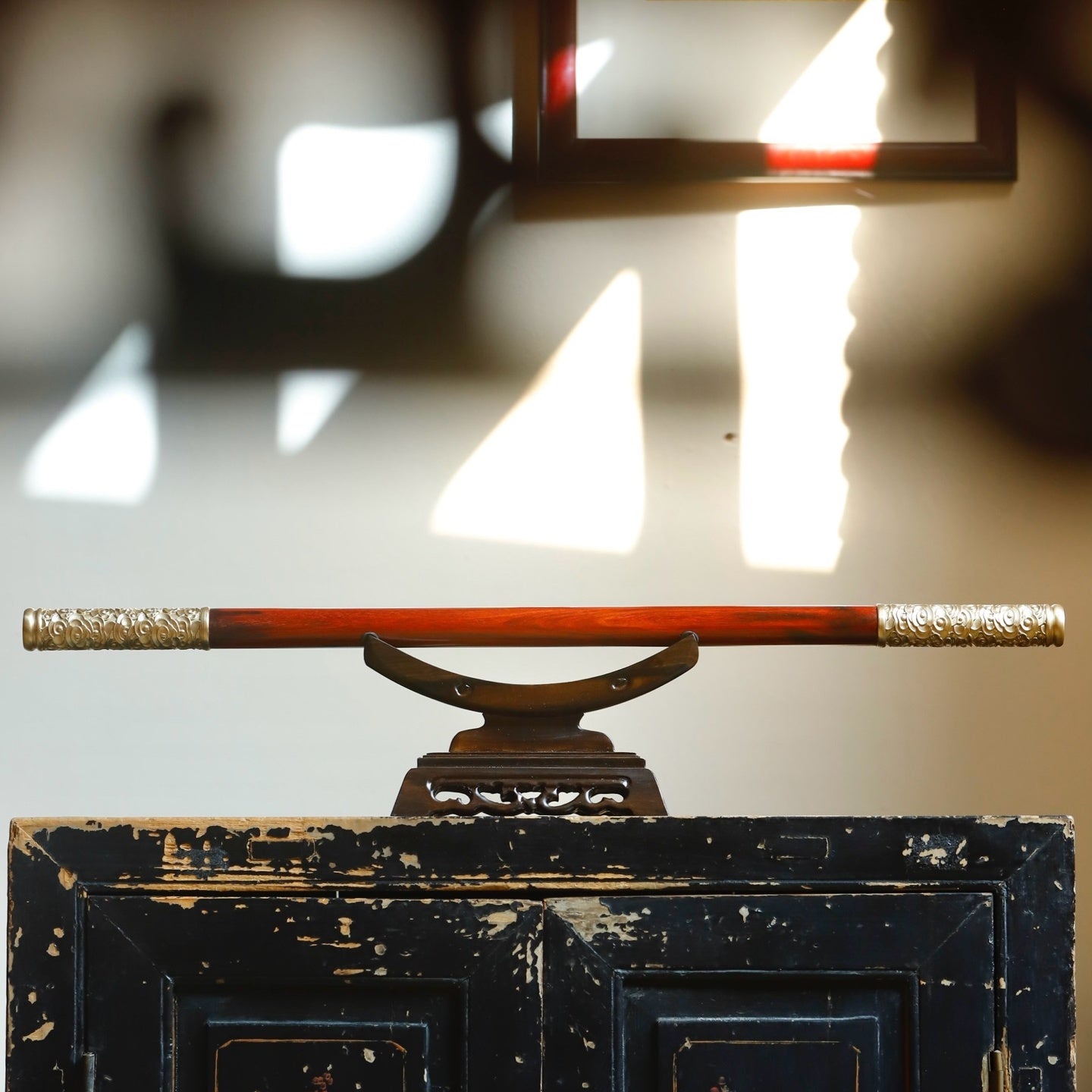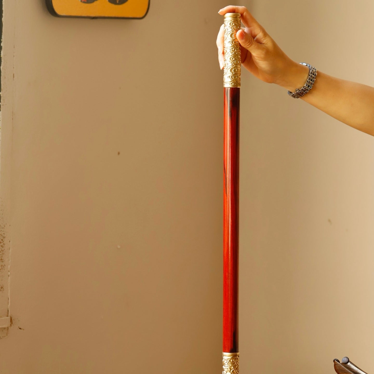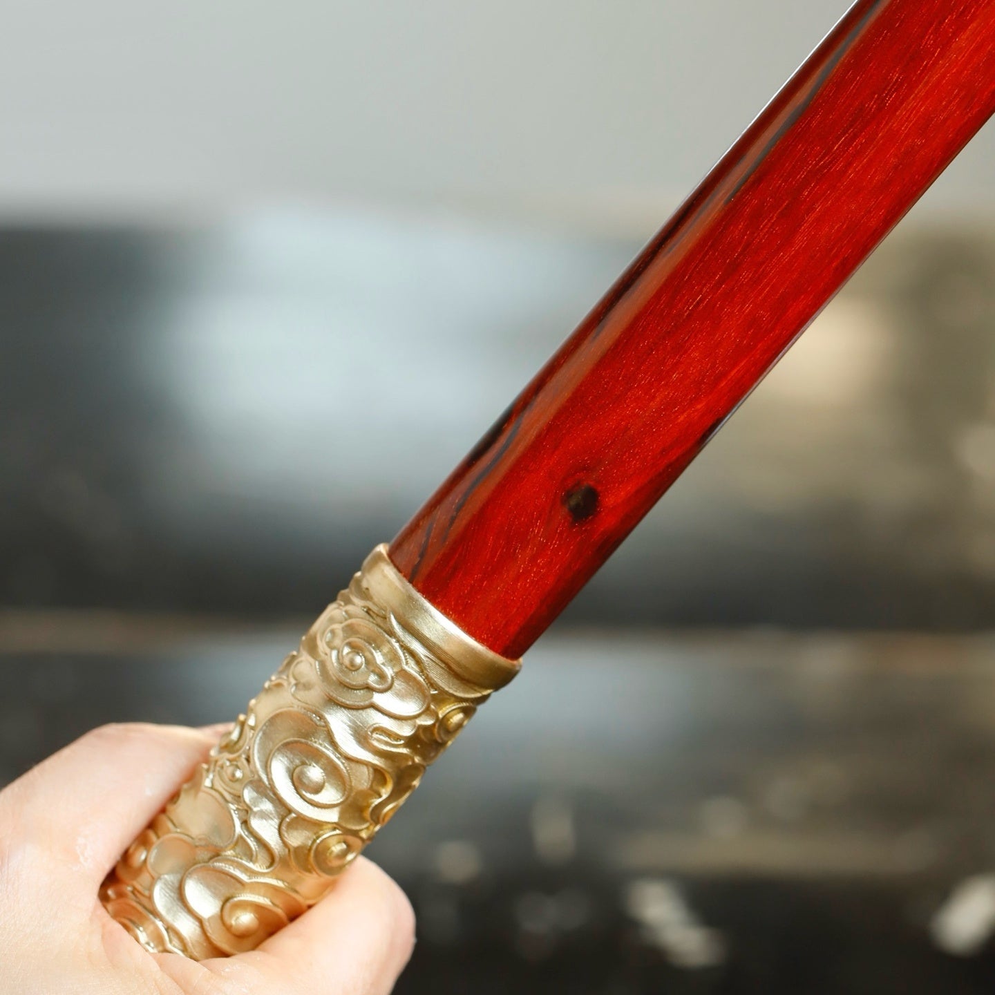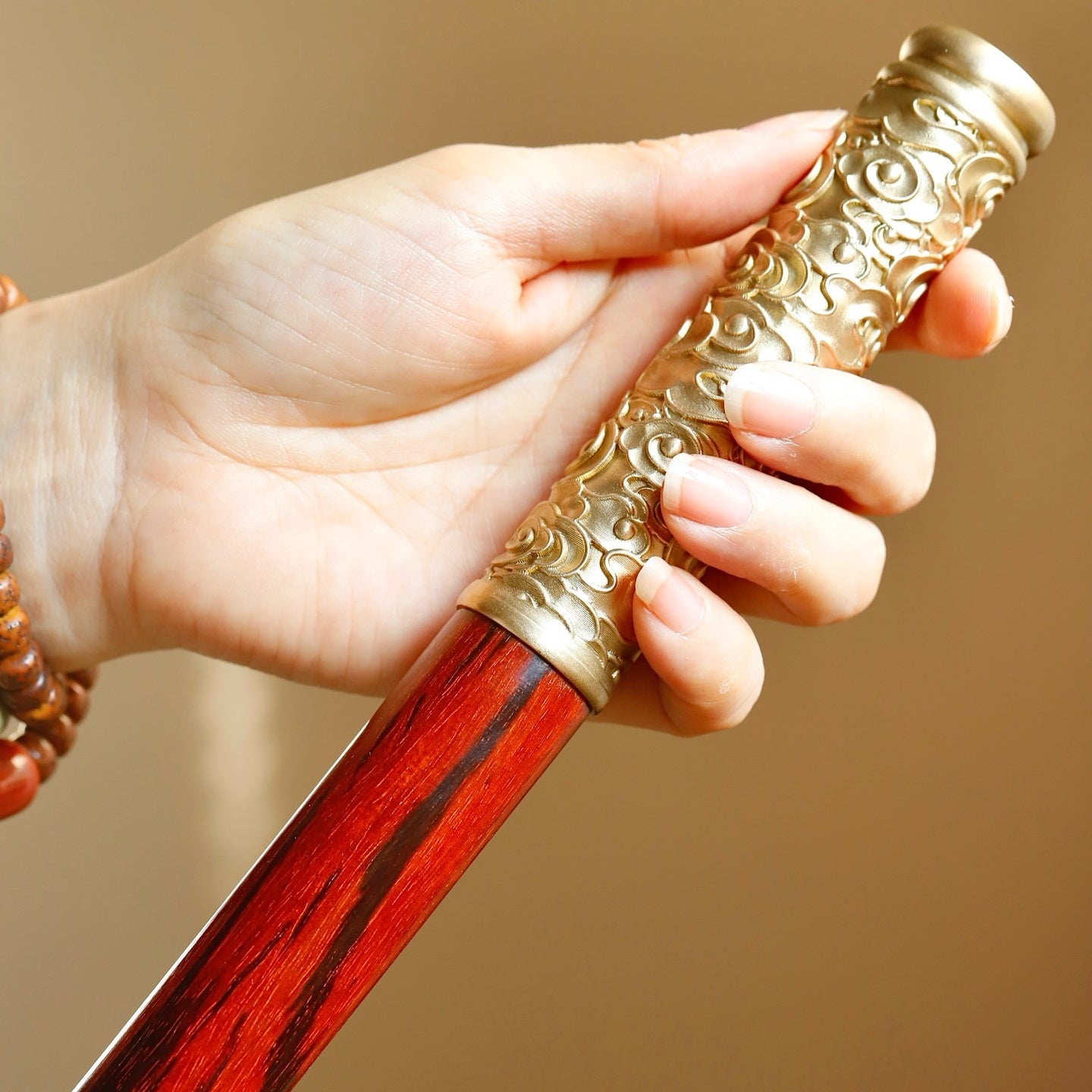 Made from Indian red sandalwood, high oil and high density, inlaid with copper.
