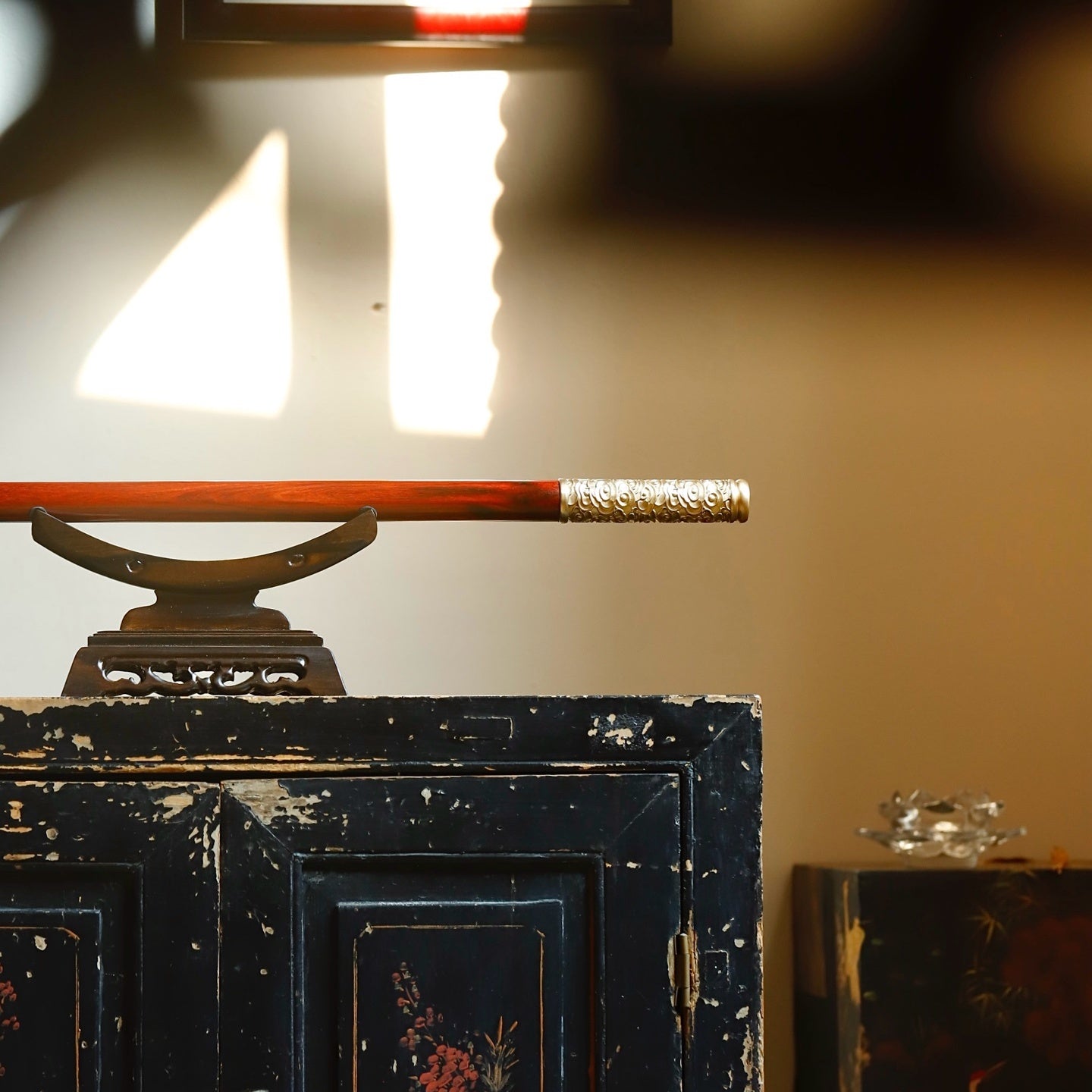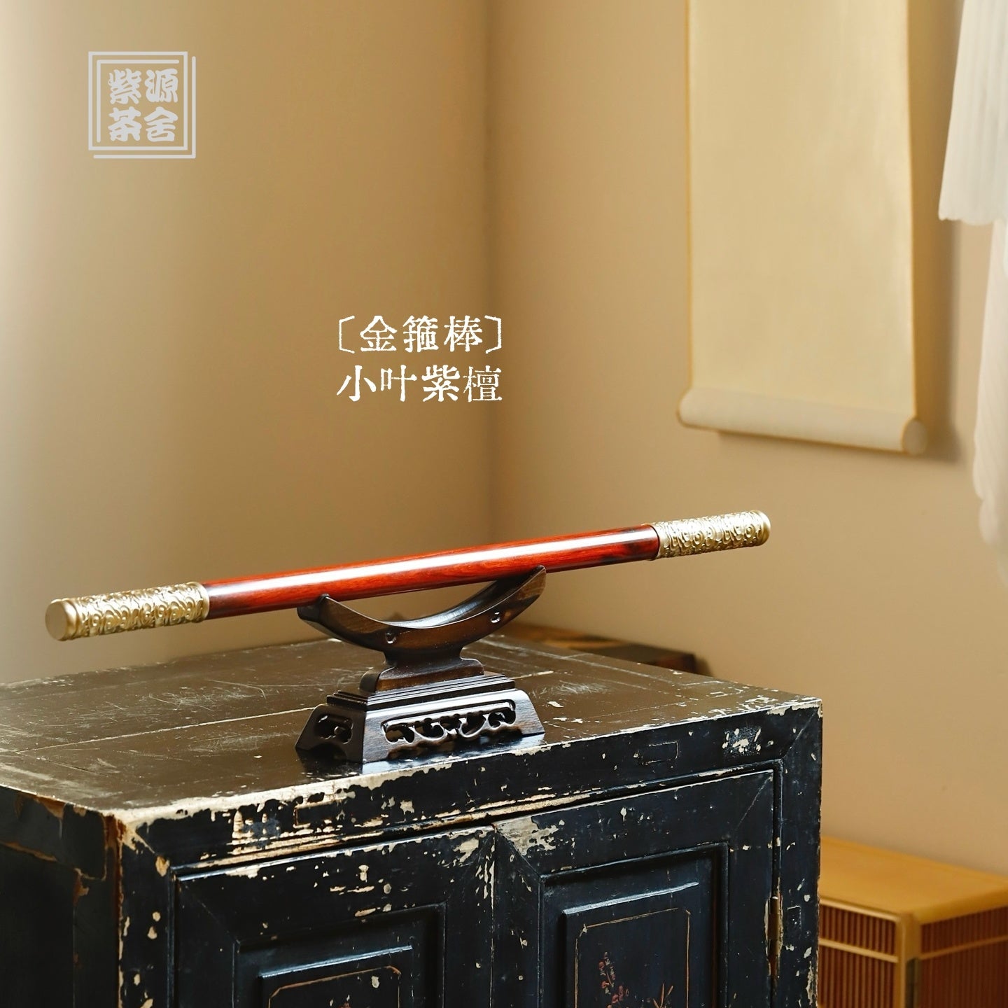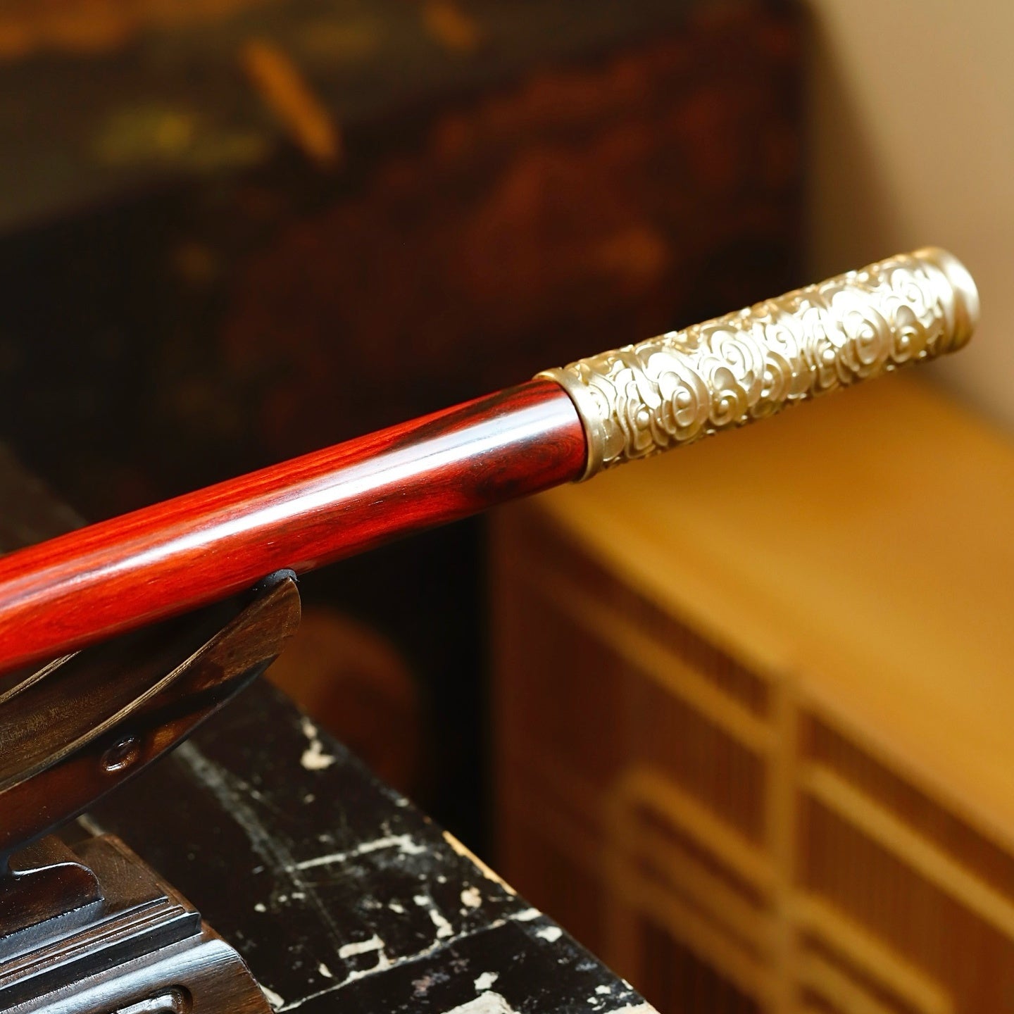 取自印度小葉紫檀,高油高密,鑲嵌銅製。