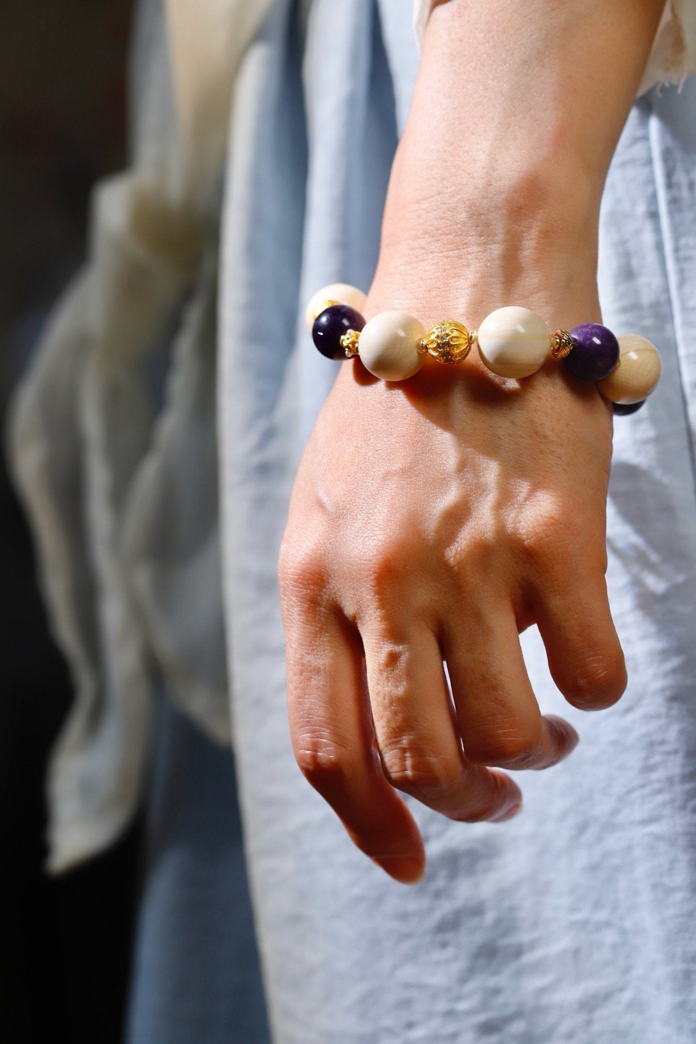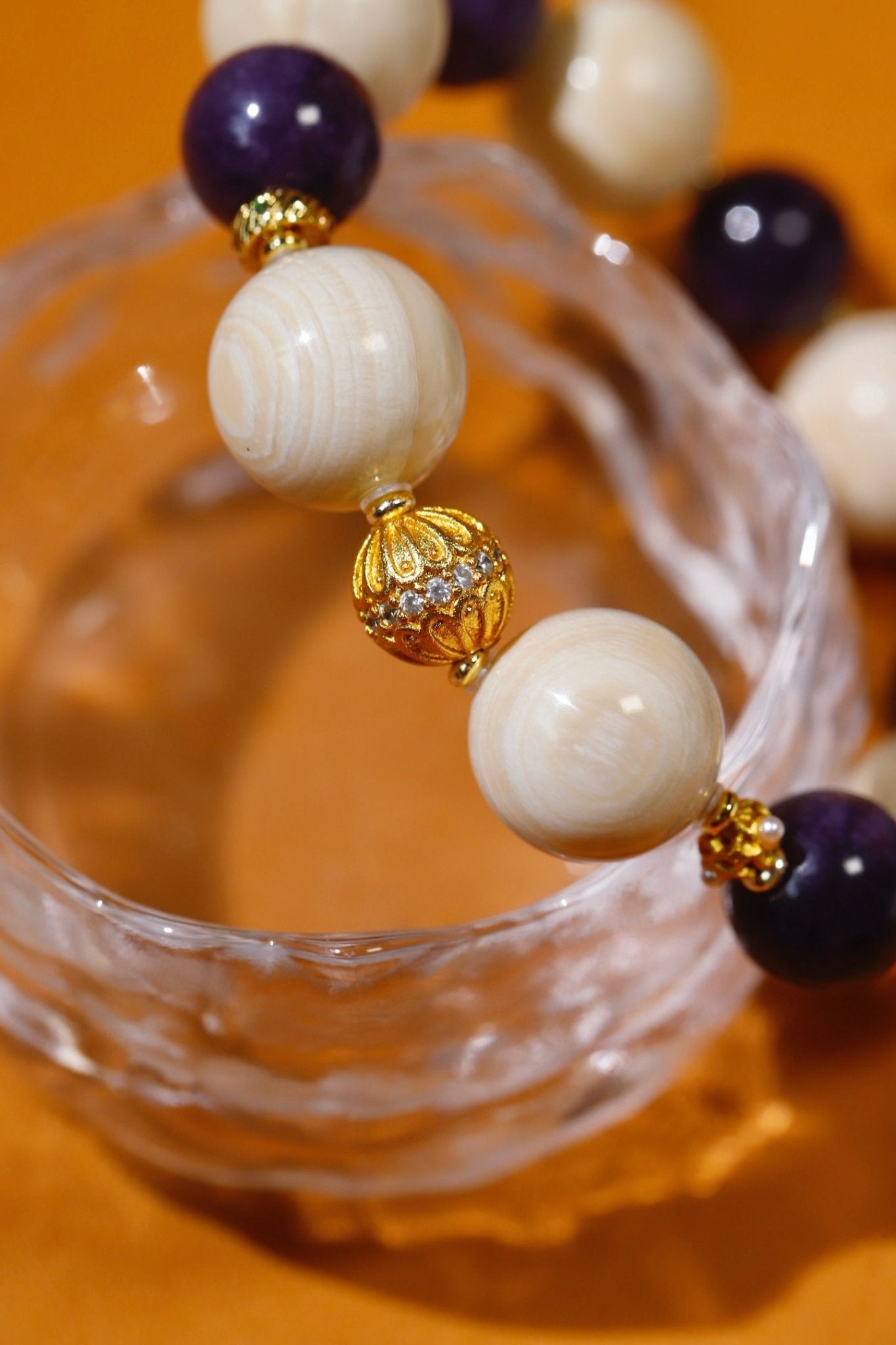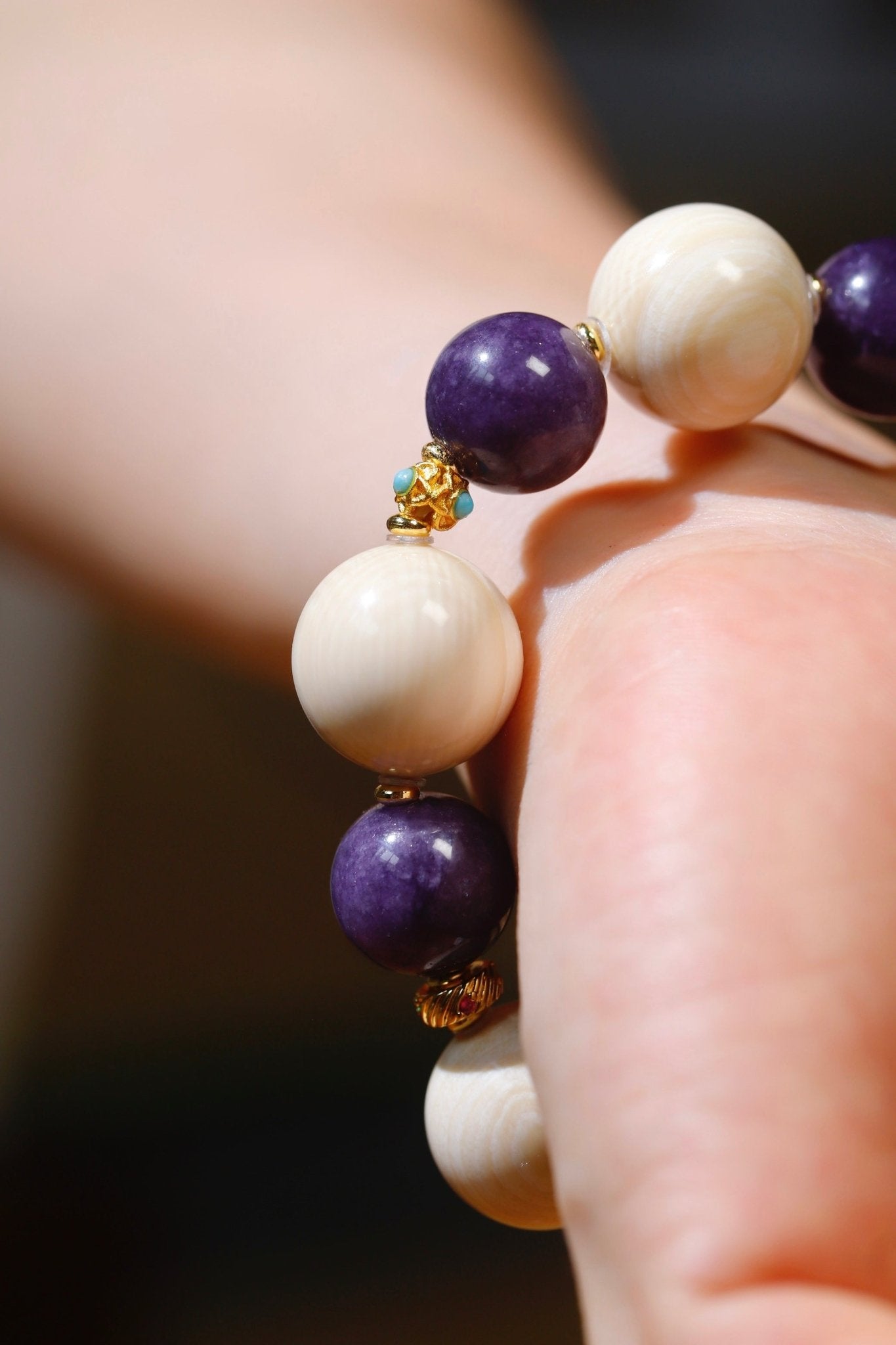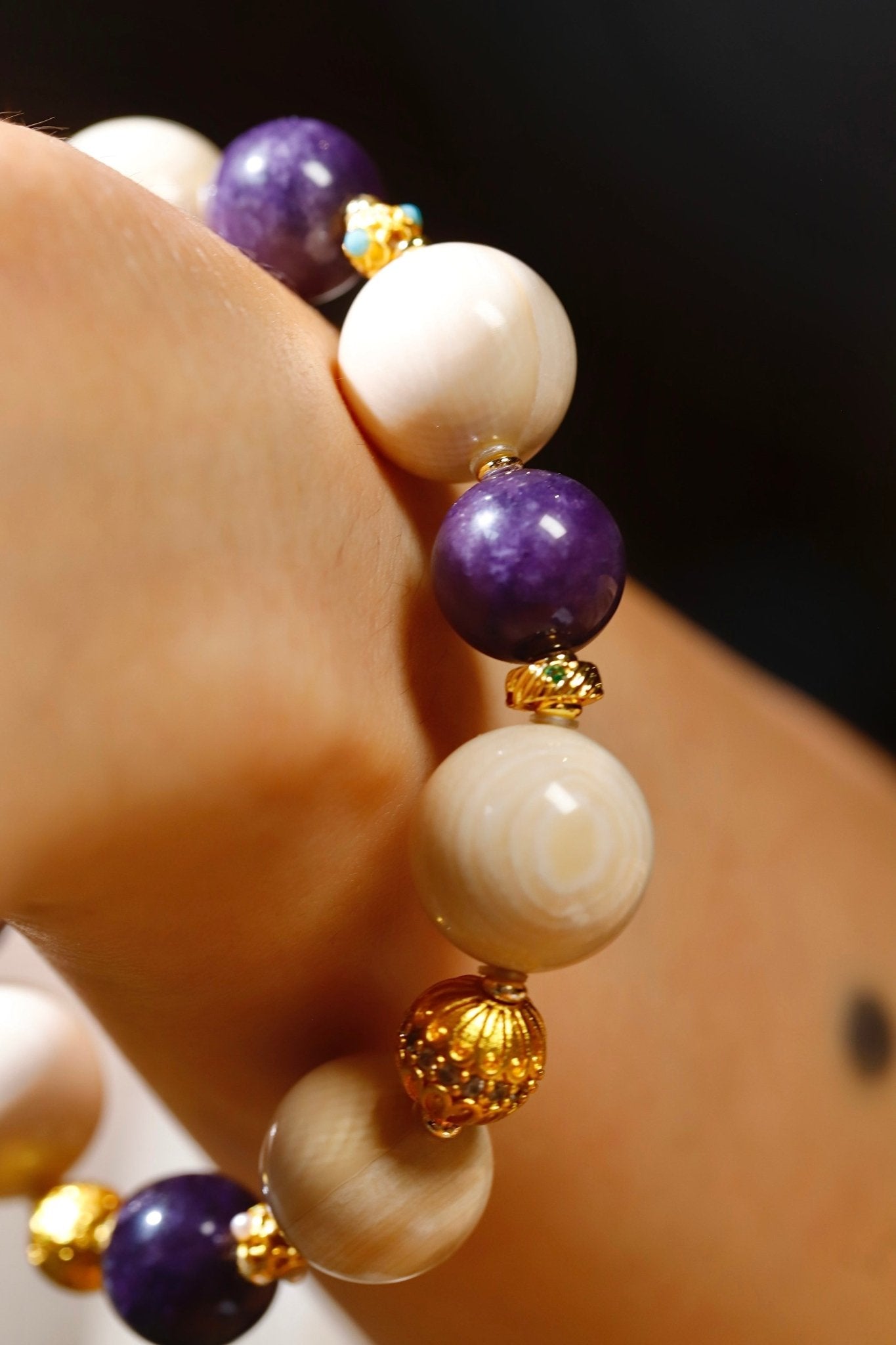 Material: 5A mammoth, paired with natural purple dragon crystal, exclusive DIY bracelet, 925 silver gold-plated, exquisite design, chic and classic; carry it on your wrist, showing elegance and nobility.