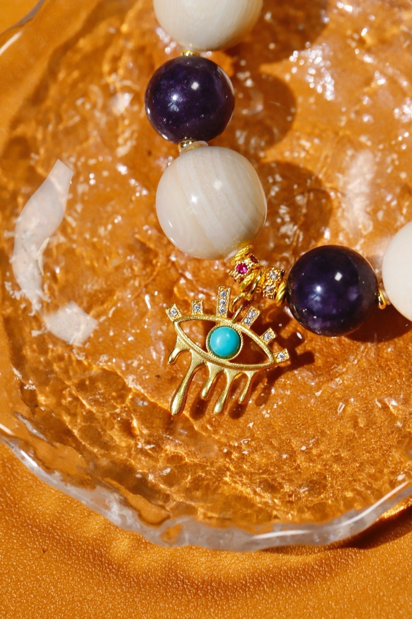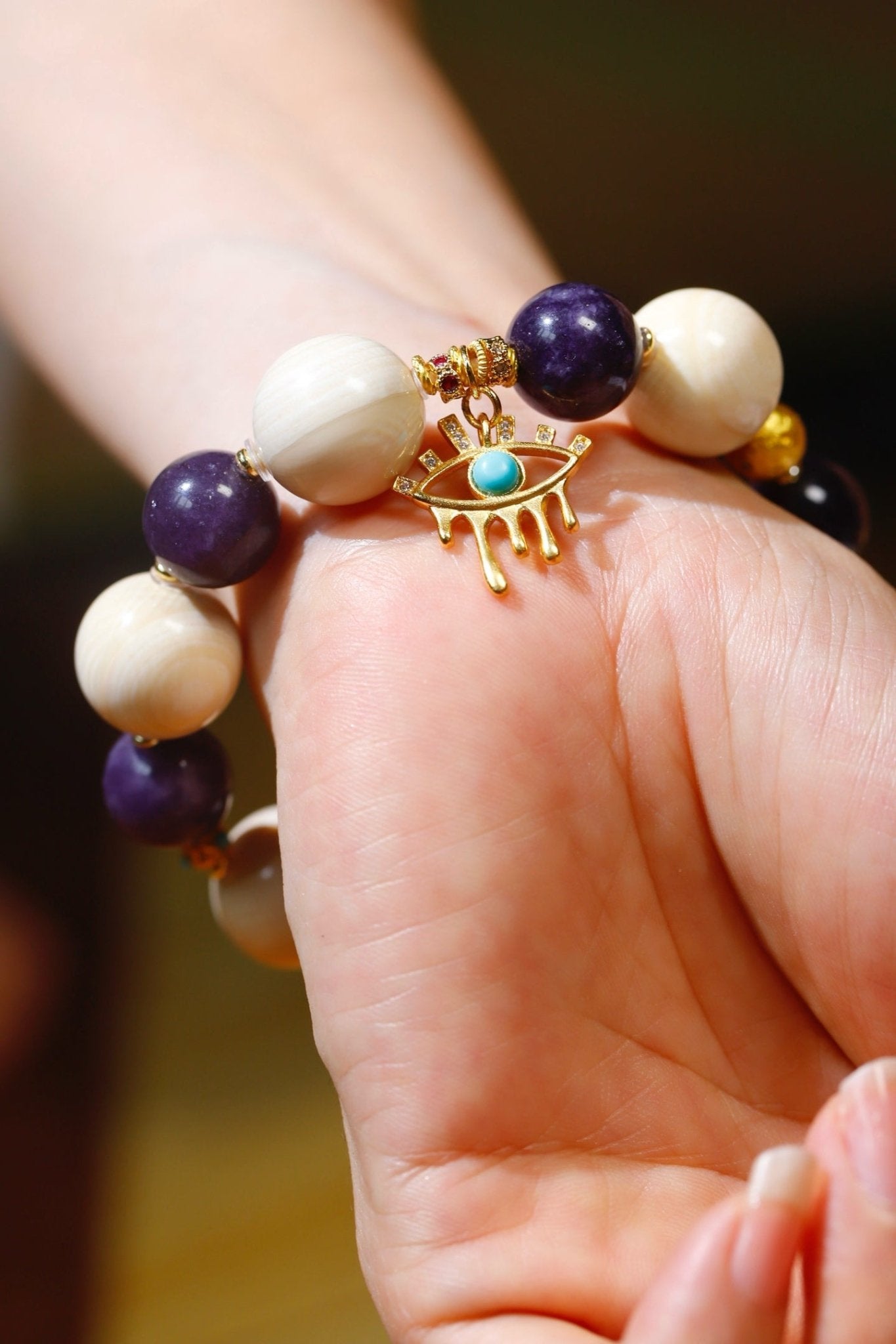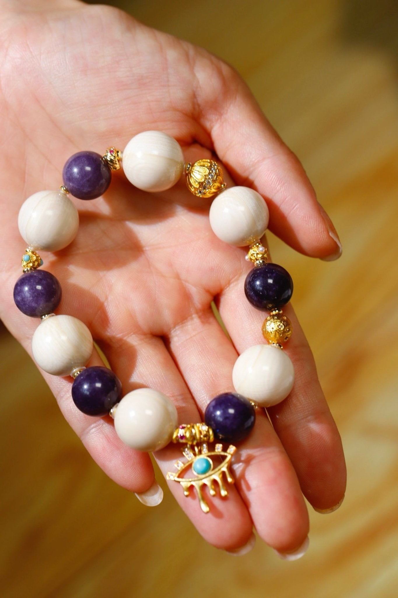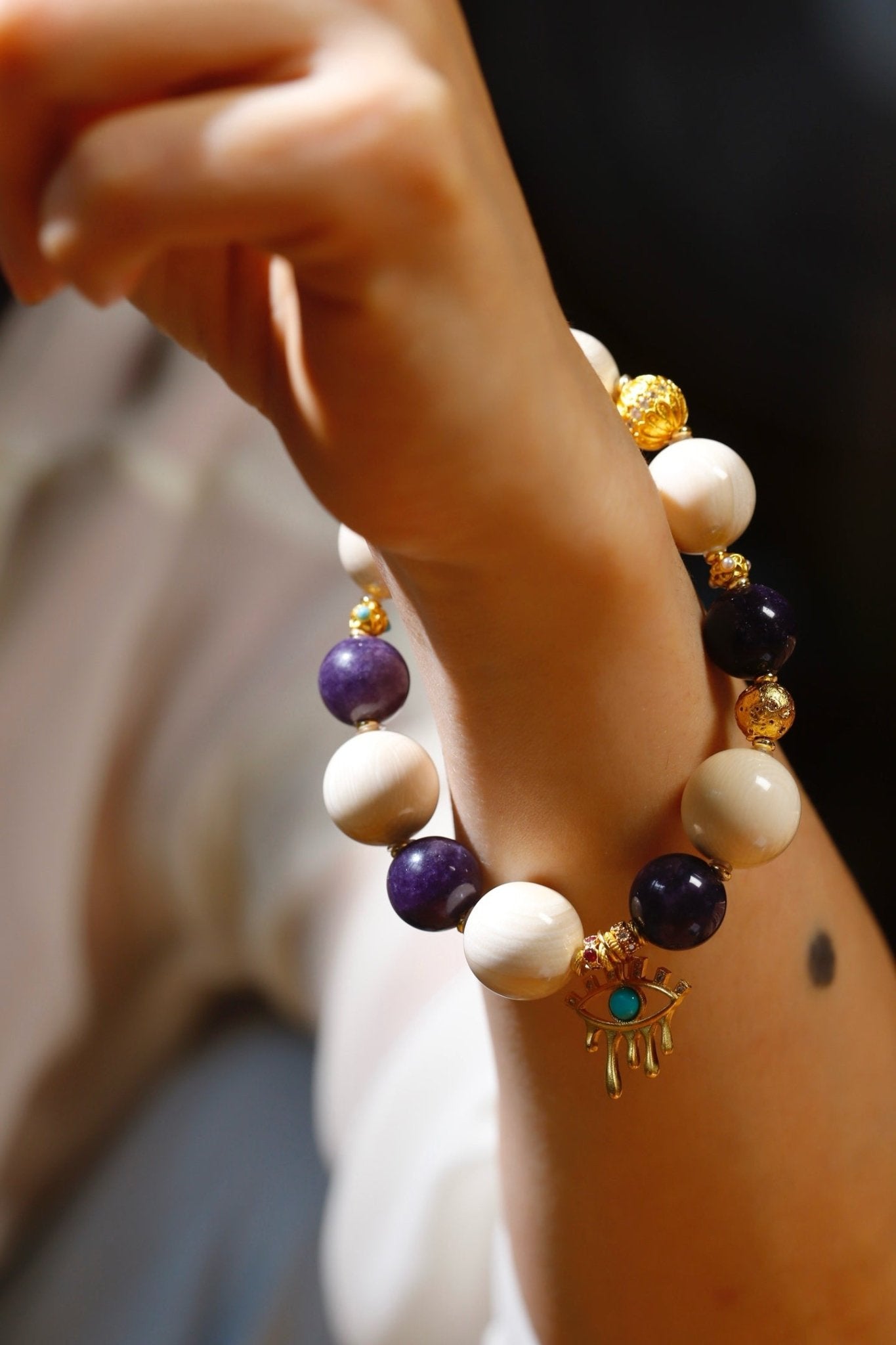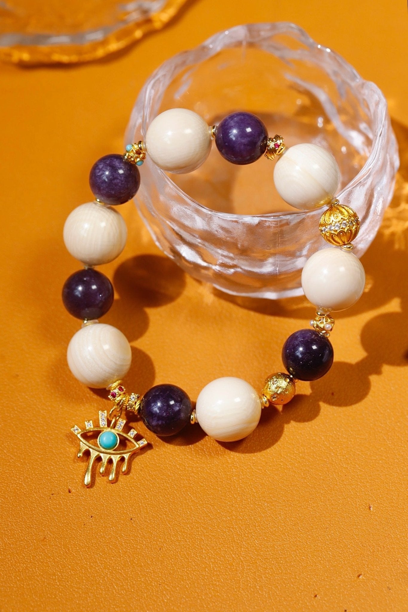 Material: 5A mammoth, paired with natural purple dragon crystal, exclusive DIY bracelet, 925 silver gold-plated, exquisite design, chic and classic; carry it on your wrist, showing elegance and nobility.