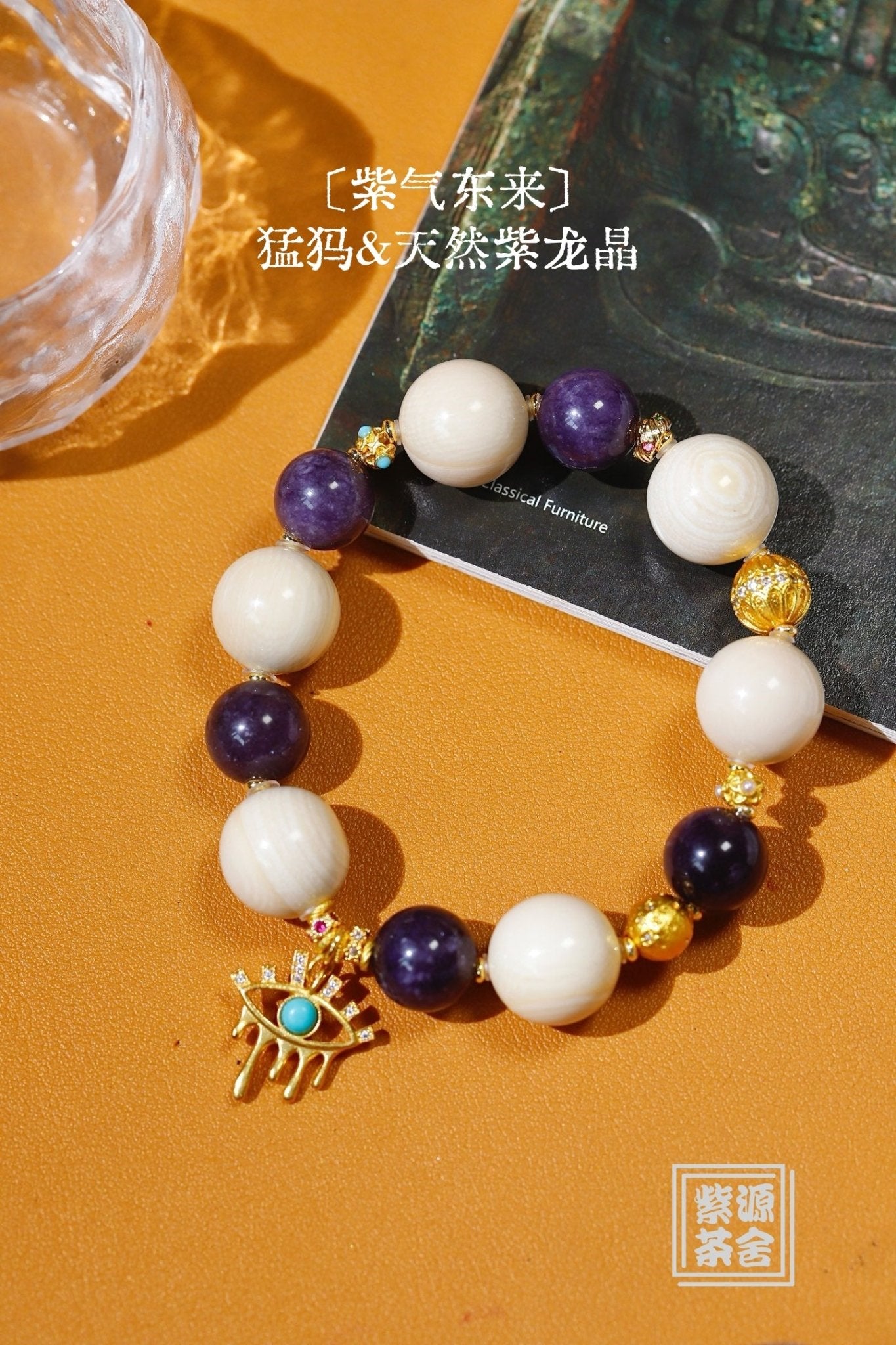 擇料5A猛獁,搭配天然紫龍晶,獨家diy手串,925銀鍍金,設計精巧,別緻經典;腕間隨身,盡顯清雅礬貴。