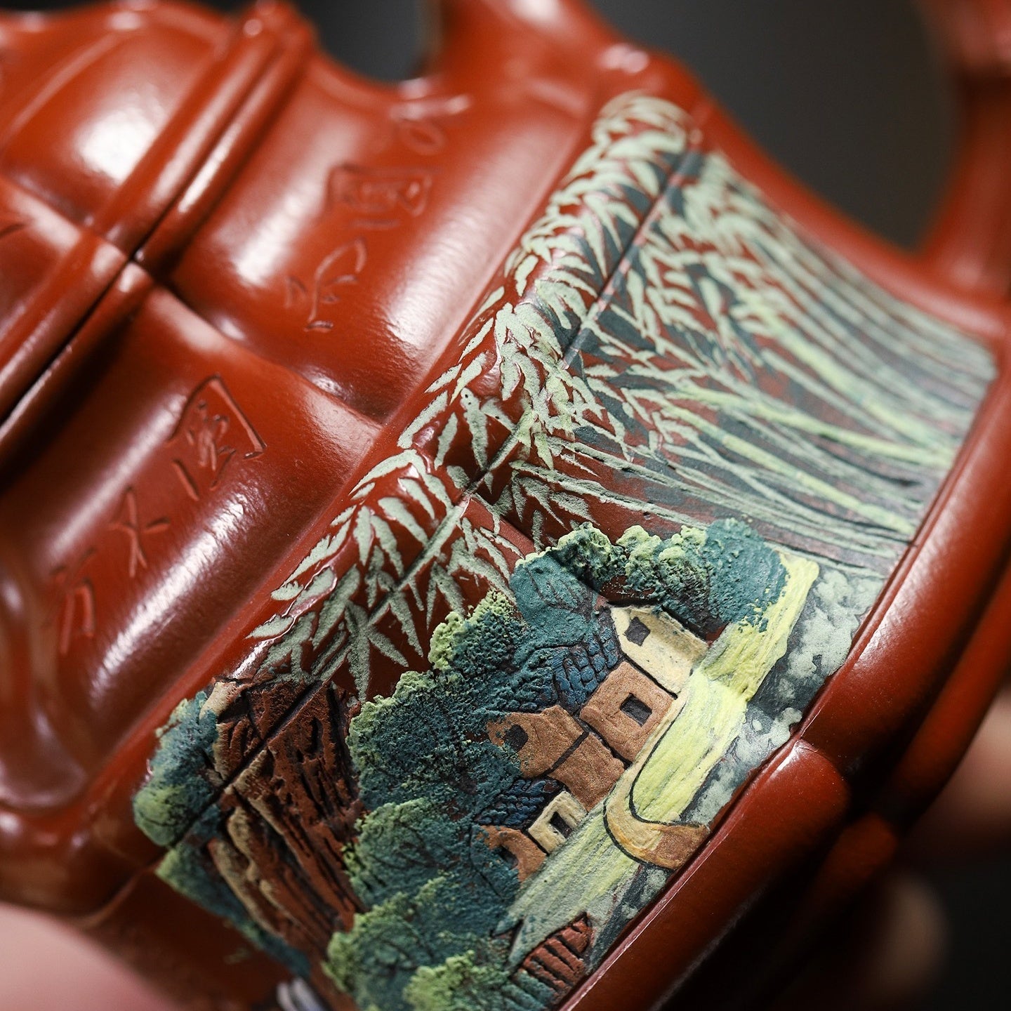The bamboo leaves decorated on the lid of the pot are clearly engraved, as if they are verdant.