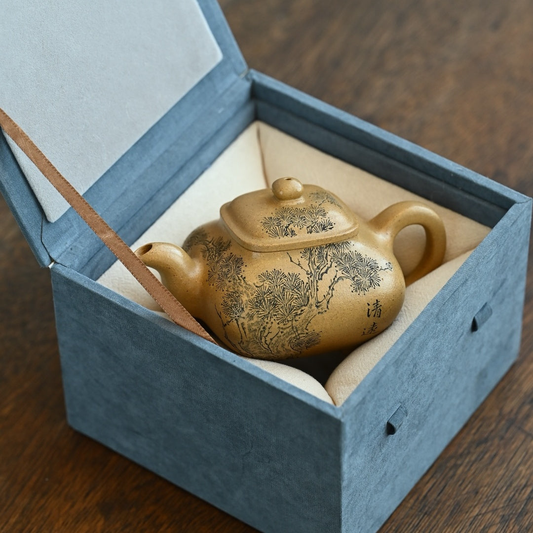 Duan clay is a key component of purple clay ore, a symbiotic mineral between Benshan green clay and purple clay. The ore is primarily sourced from the Huanglongshan mining area in Yixing, Jiangsu Province. Variations in the symbiotic ratio and geological conditions have led to the development of various derivatives, including golden Duan clay, multicolored Duan clay, and sesame Duan clay. Duan clay has a distinct granular structure and strong air permeability. Firing temperatures range from 1160°C to 1280°C, the finished product exhibits hues of yellow, green, and gold. Duan clay has a high sand content, strong air permeability, and rapid heat dissipation, resulting in a relatively light body.