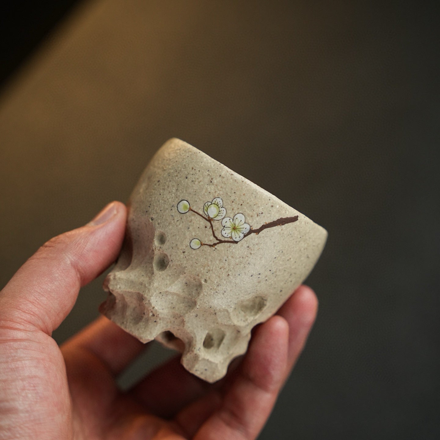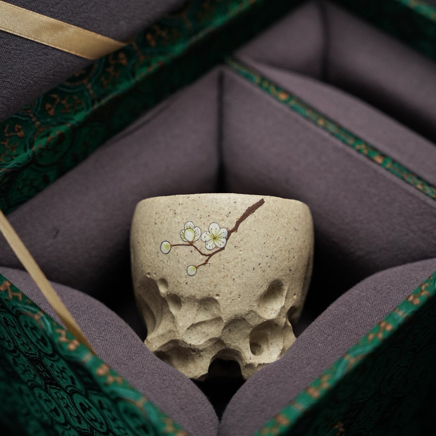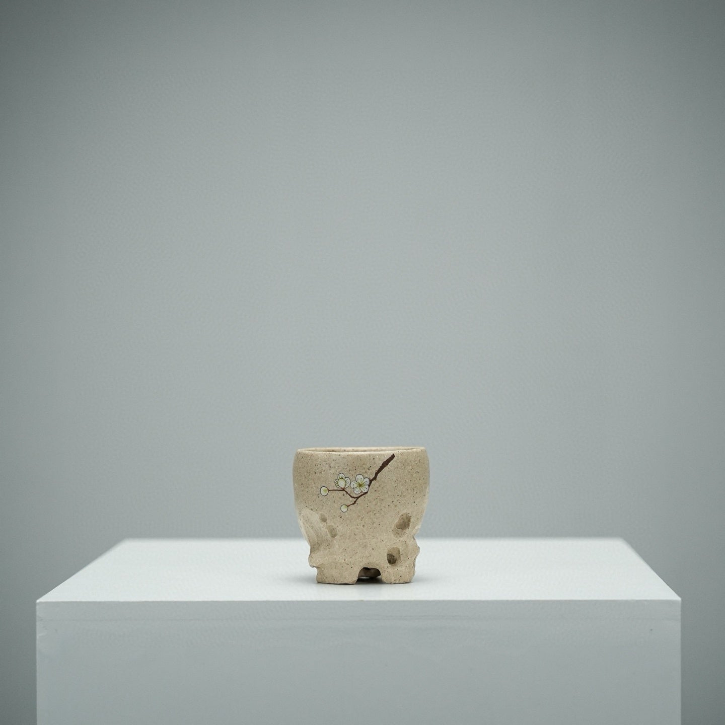 The base of the cup is handcrafted from Taihu stone, with plum blossoms painted on the clay. Intricate details, perfect for both viewing and enjoying!