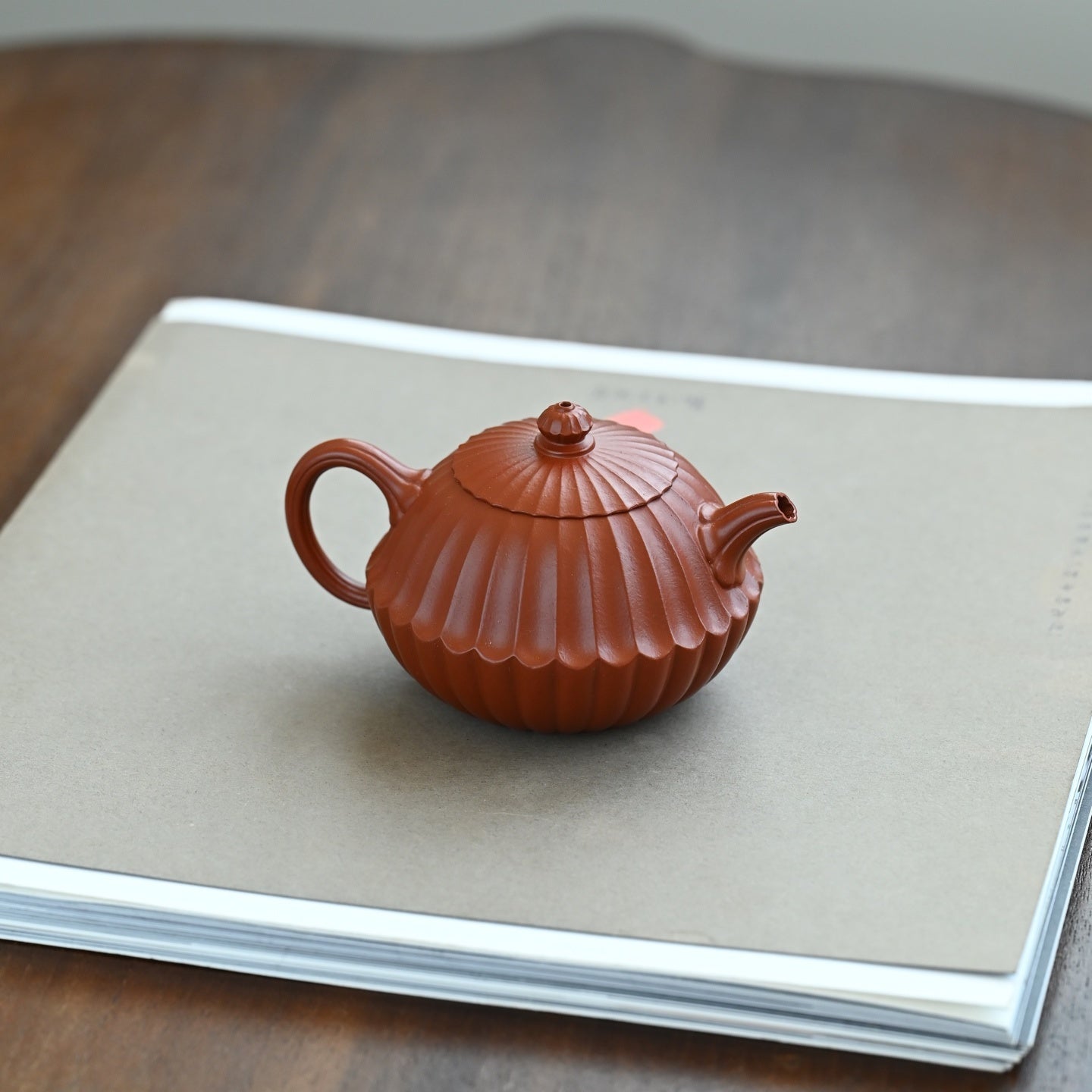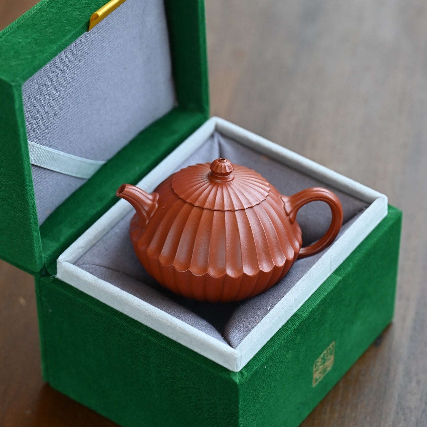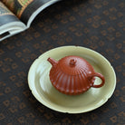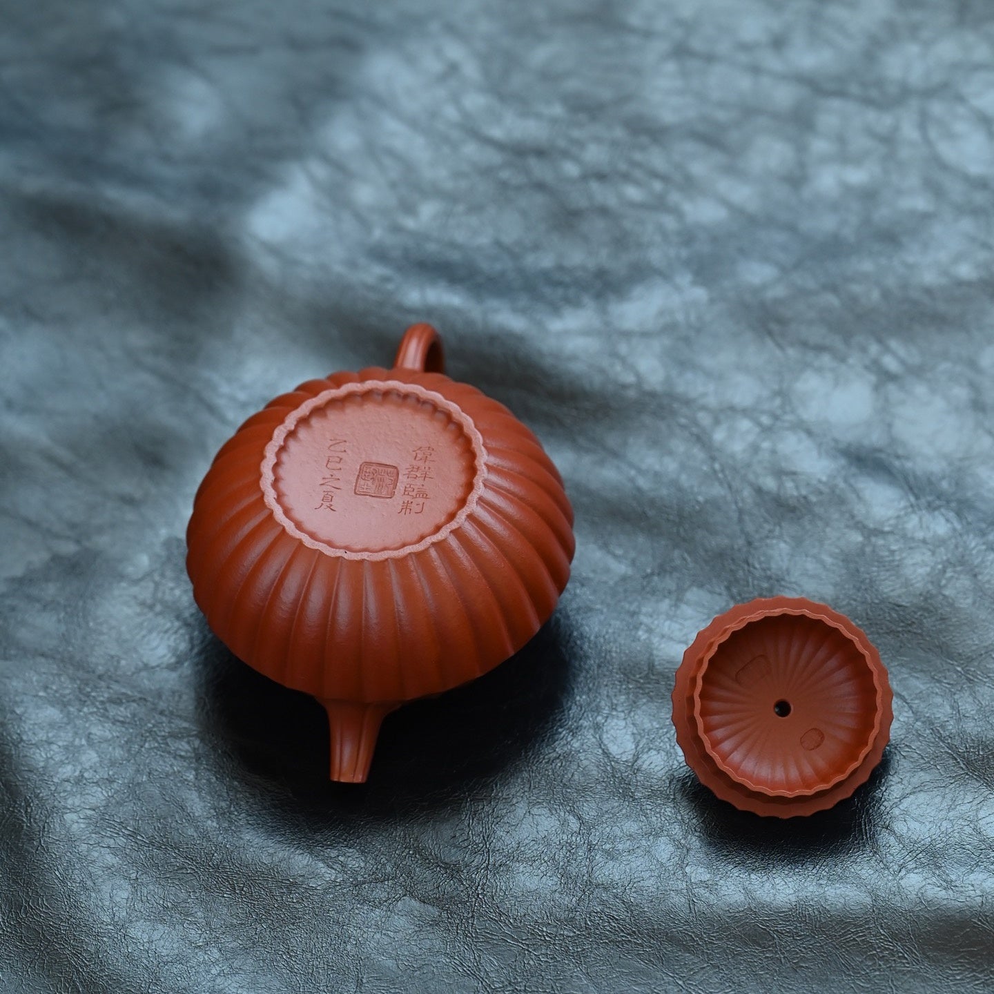 大紅袍泥是紫砂泥料中硃泥類的比較少有品種,其原礦具有低張力、高收縮比的特性(收縮率約30%),製作過程中易開裂變形,成品率低。