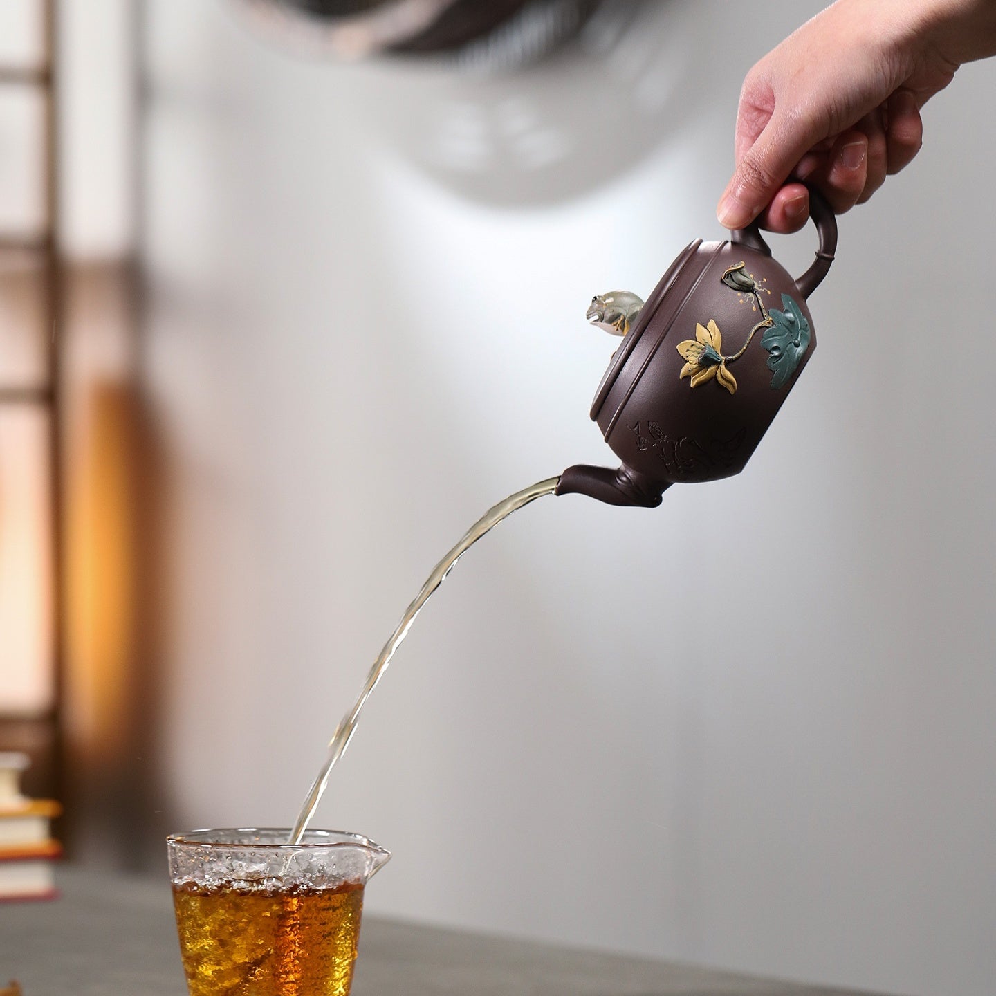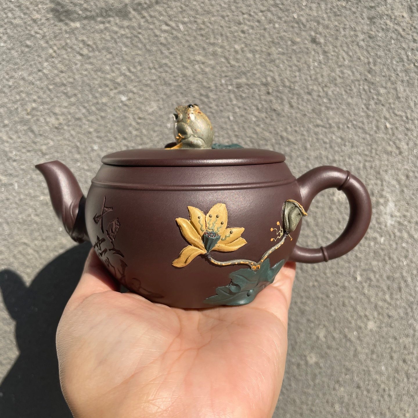 整器圓潤大氣,不失典雅,壺鈕青蛙惟妙惟肖,逸趣橫生。