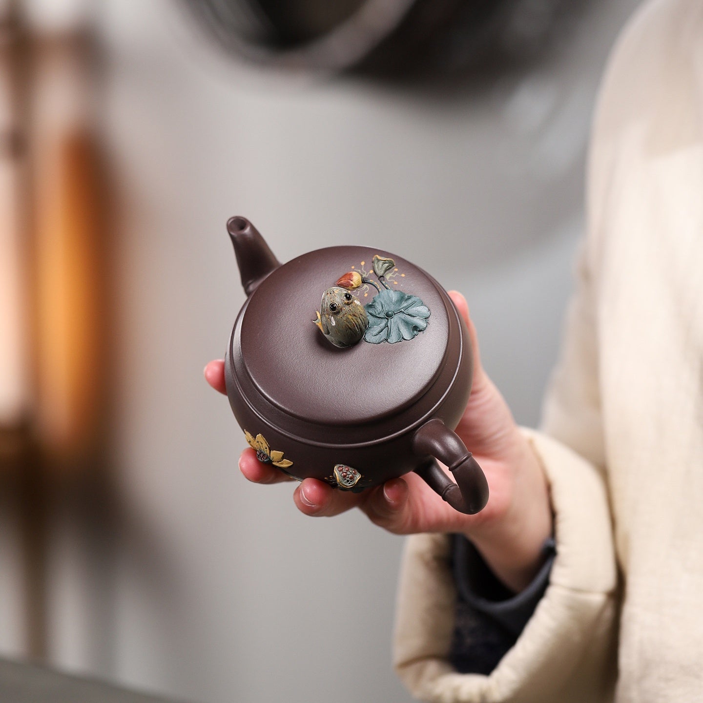【Capacity】270cc The entire piece is rounded and elegant, with a lifelike frog on the knob, adding a touch of charm.