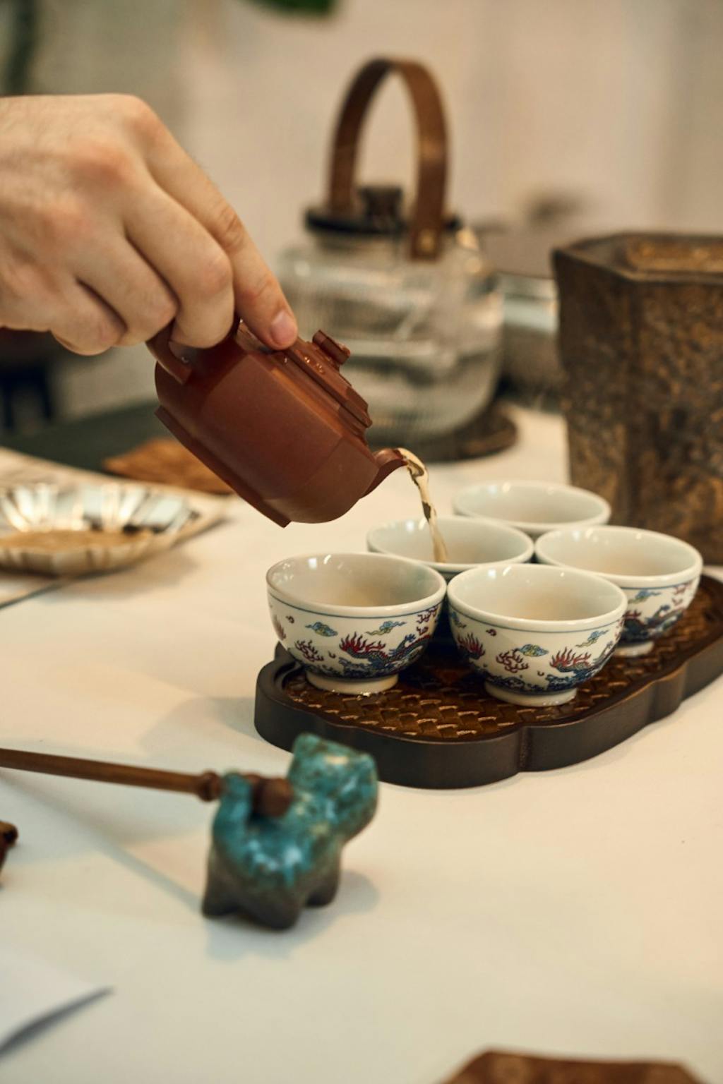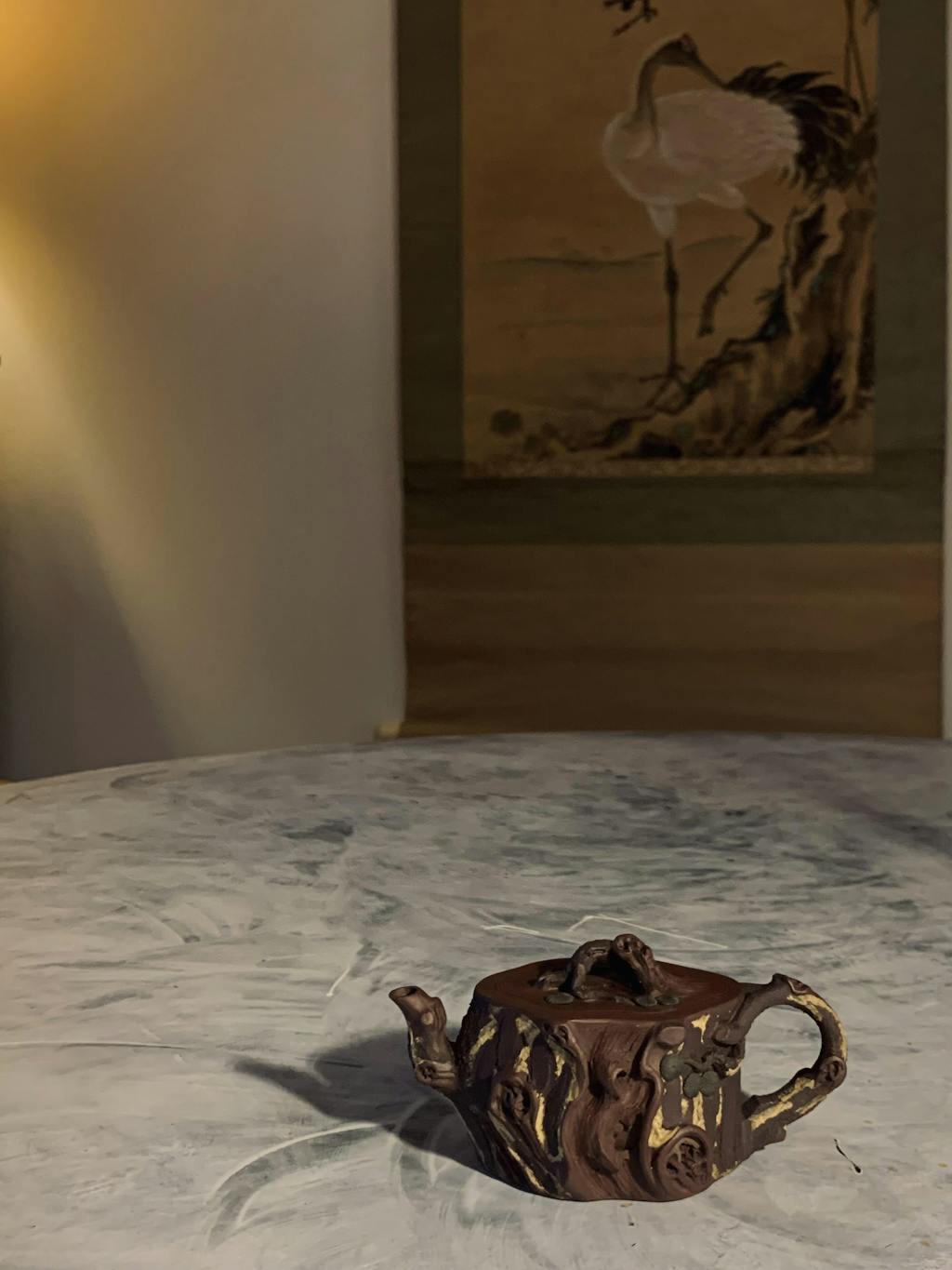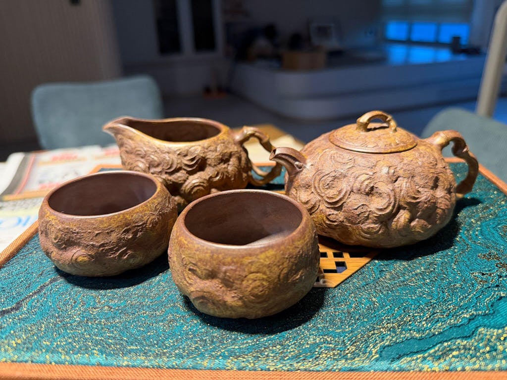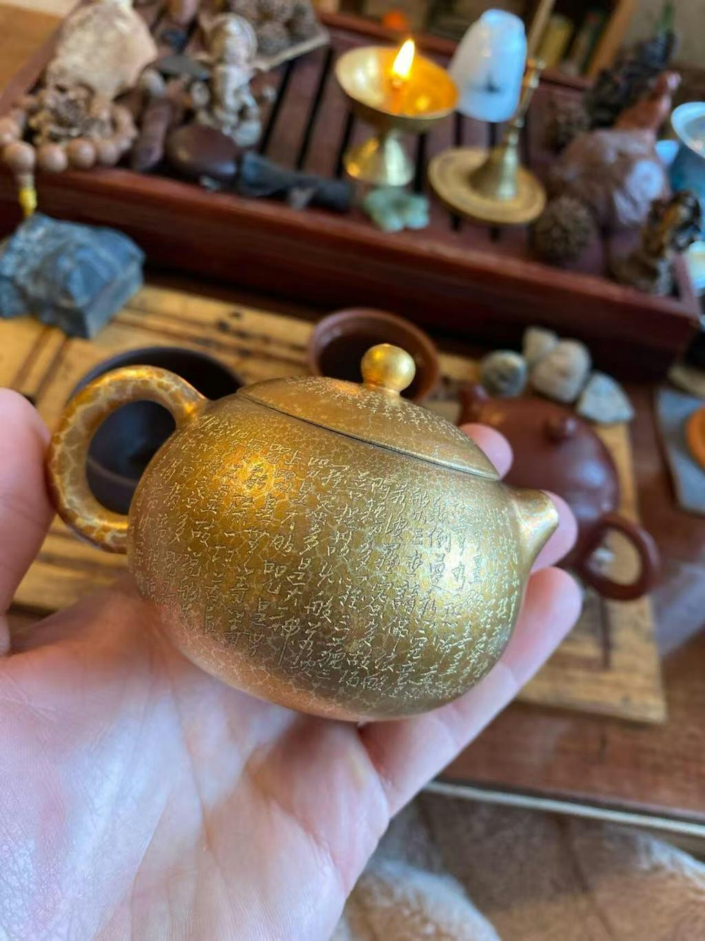 The earthy brown and golden tones complement each other perfectly, creating a warm and timeless look. Despite its small size, it has a solid, meaningful presence. Overall, this teapot is not just a vessel—it’s a little work of art. It brings personality, warmth, and a touch of storytelling to any tea ritual. It’s only 80 ml, perfect for enjoying special teas that you want to appreciate little bit extra.