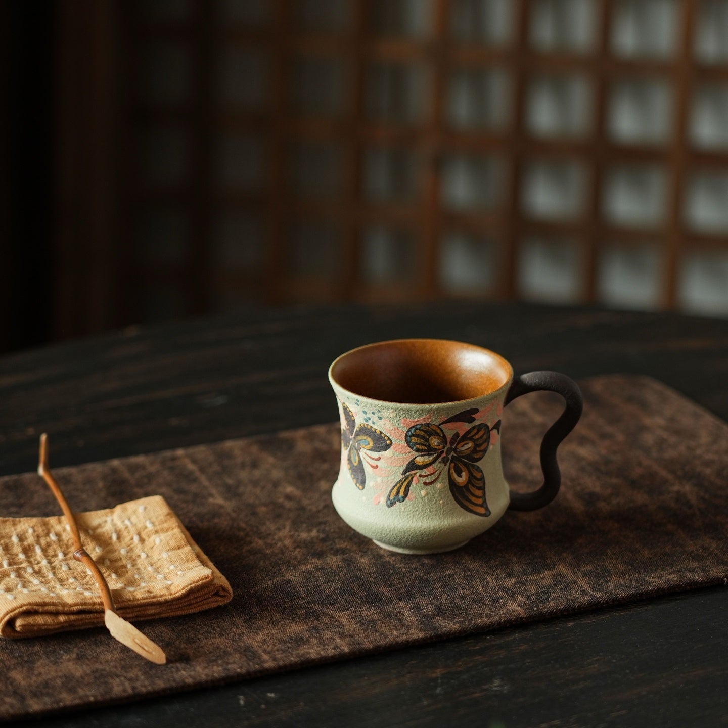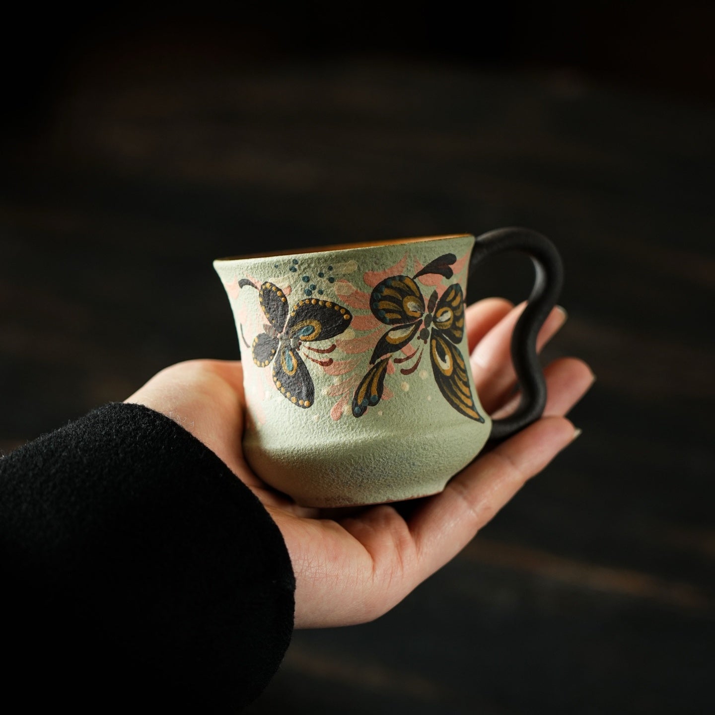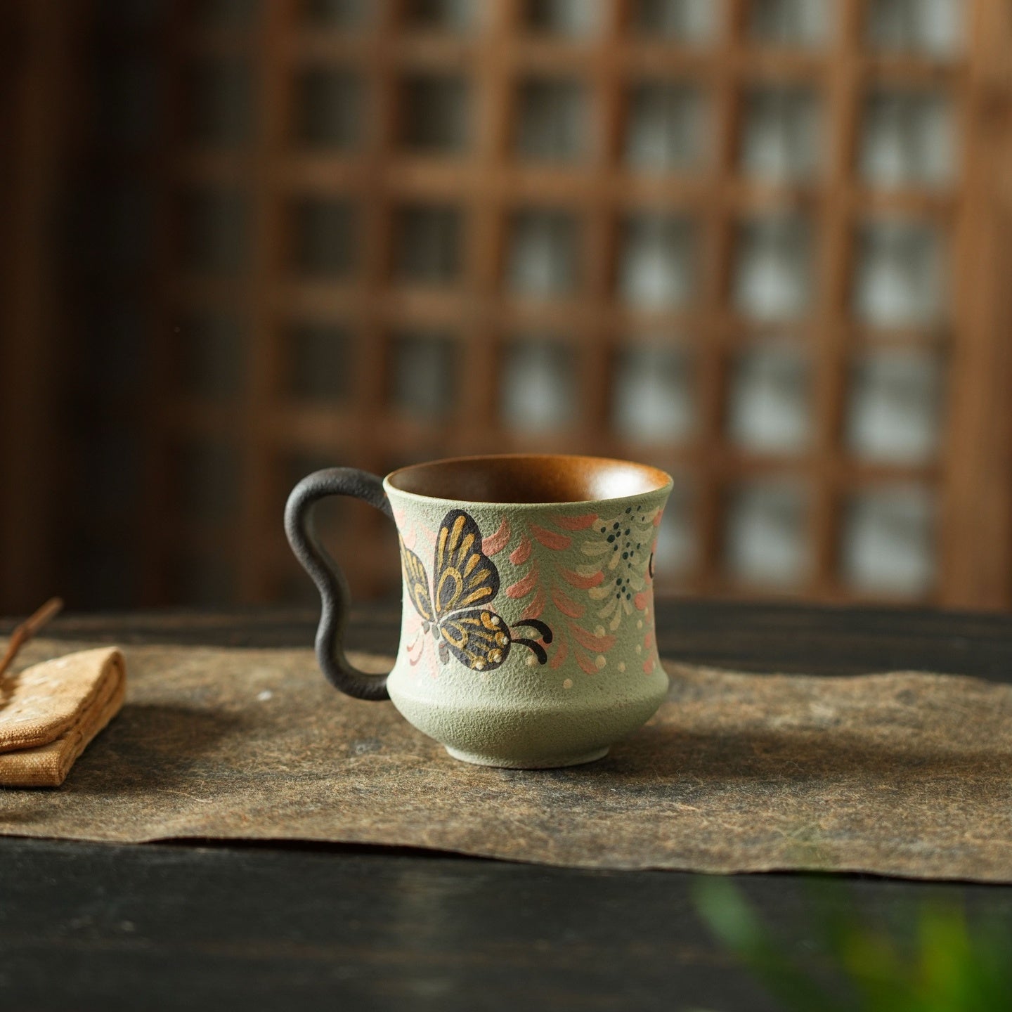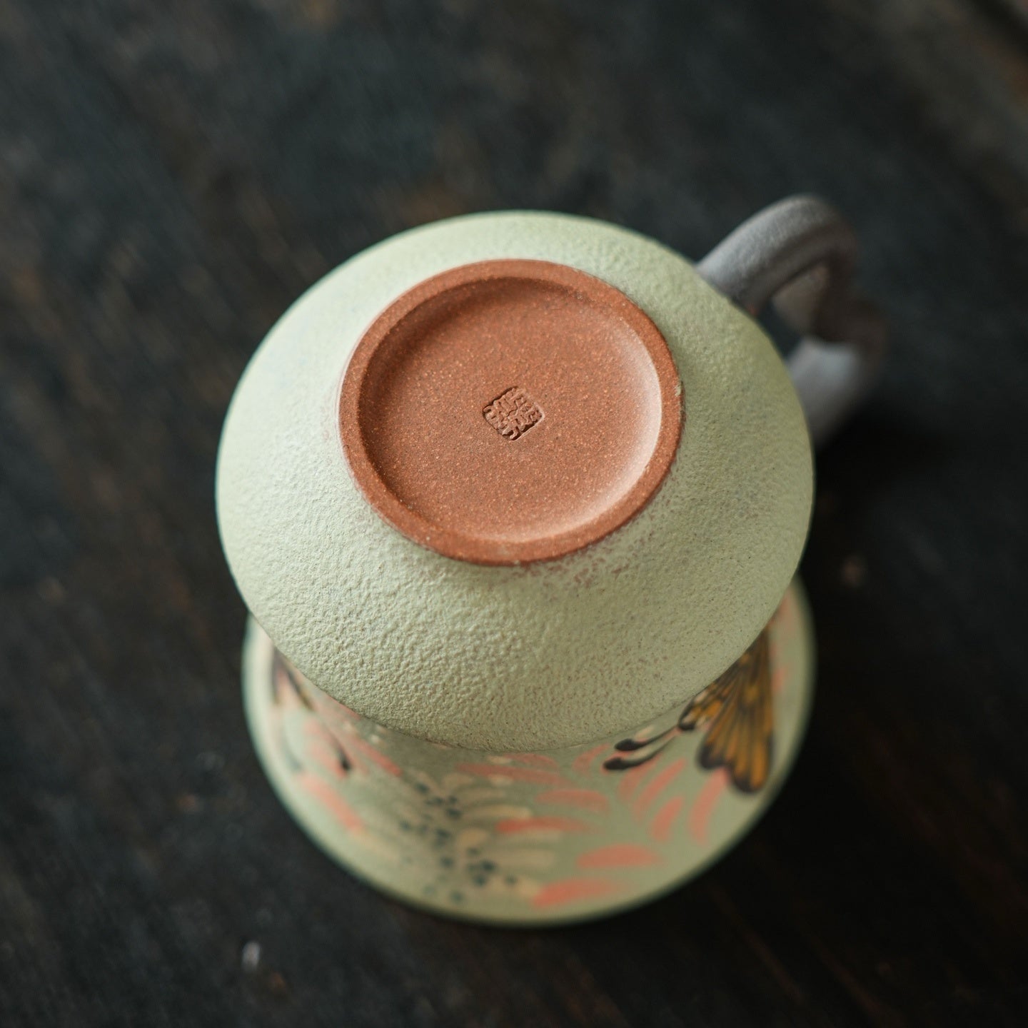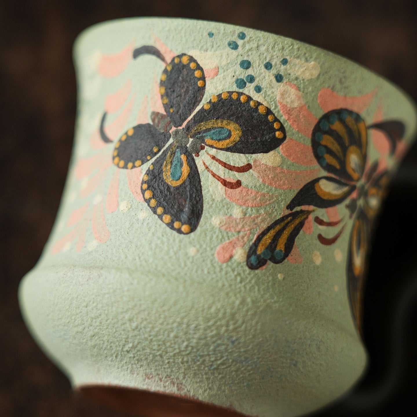 捧一杯迷蝶紫砂杯,茶煙裡恍入莊生曉夢,蝴蝶繞杯翩躚,俗世的煩惱都隨夢影輕揚了。