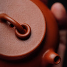 宜興紫砂材質中的「小紅泥」是不加他料的嫩泥,含大量氧化鐵,經過窯溫燒會變成硃紅色,泥質細、砂粒微、密度大、結晶高,窯溫約為1080度。