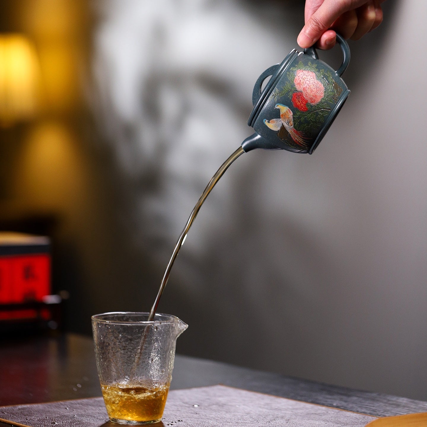 【Warm the teapot before use】: First pour 40-50 degree water, pick up the teapot, shake it, so that the teapot body is evenly heated, so that the teapot is warm, pour the water, then pour boiling water, shake it again, and pour it out. This process is to make the teapot body evenly heated and can clean and disinfect the teapot body by the way.