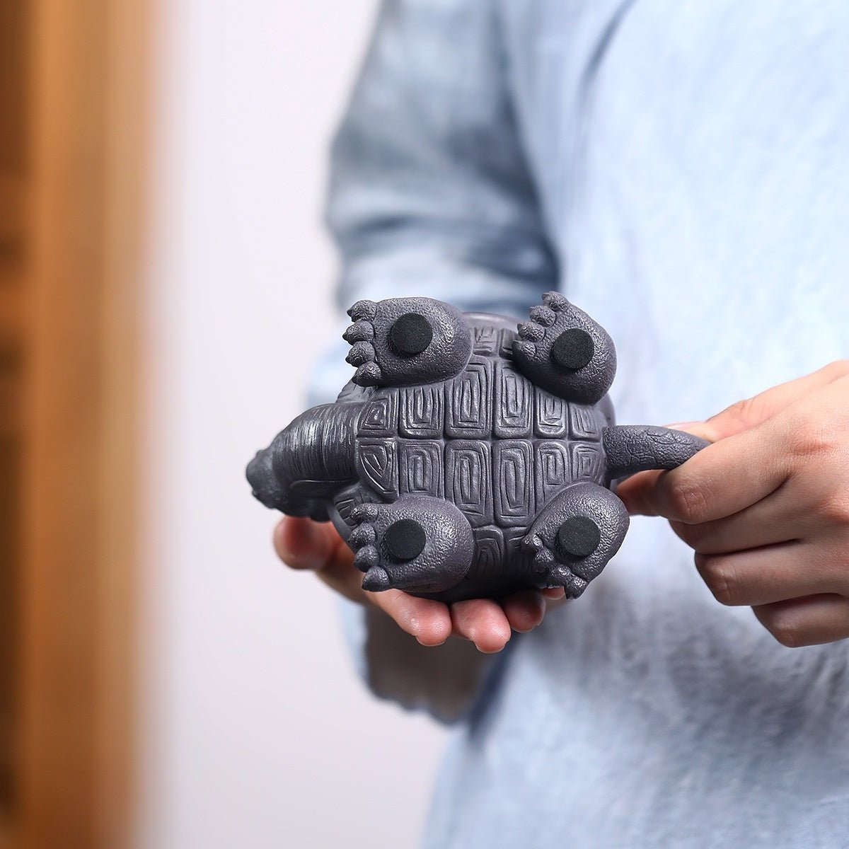 This pot has a unique shape, vivid charm, and is ingenious. The dragon turtle is a beast of good fortune, a symbol of honor, status, longevity, and authority! The pot body is made of a turtle shape, and the spout is a dragon head roaring to the sky, which is realistic and majestic, standing upright, with clear eyebrows and eyes, extraordinary momentum, and delicate and vivid details
