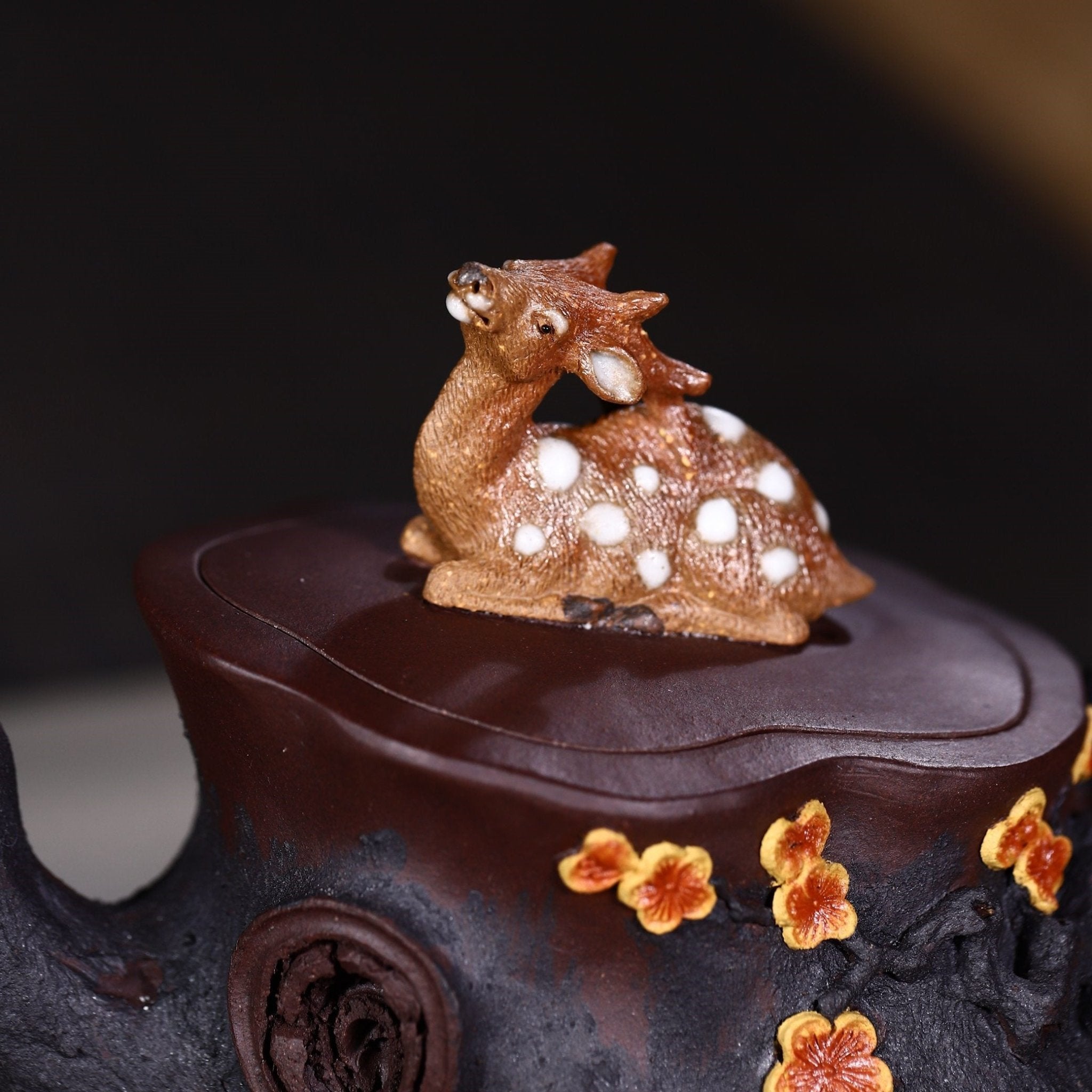 整體形像生動,惟妙惟肖,以鹿為鈕,梅樁為壺,一股清新脫俗,高雅娟秀的氣勢油然而生。