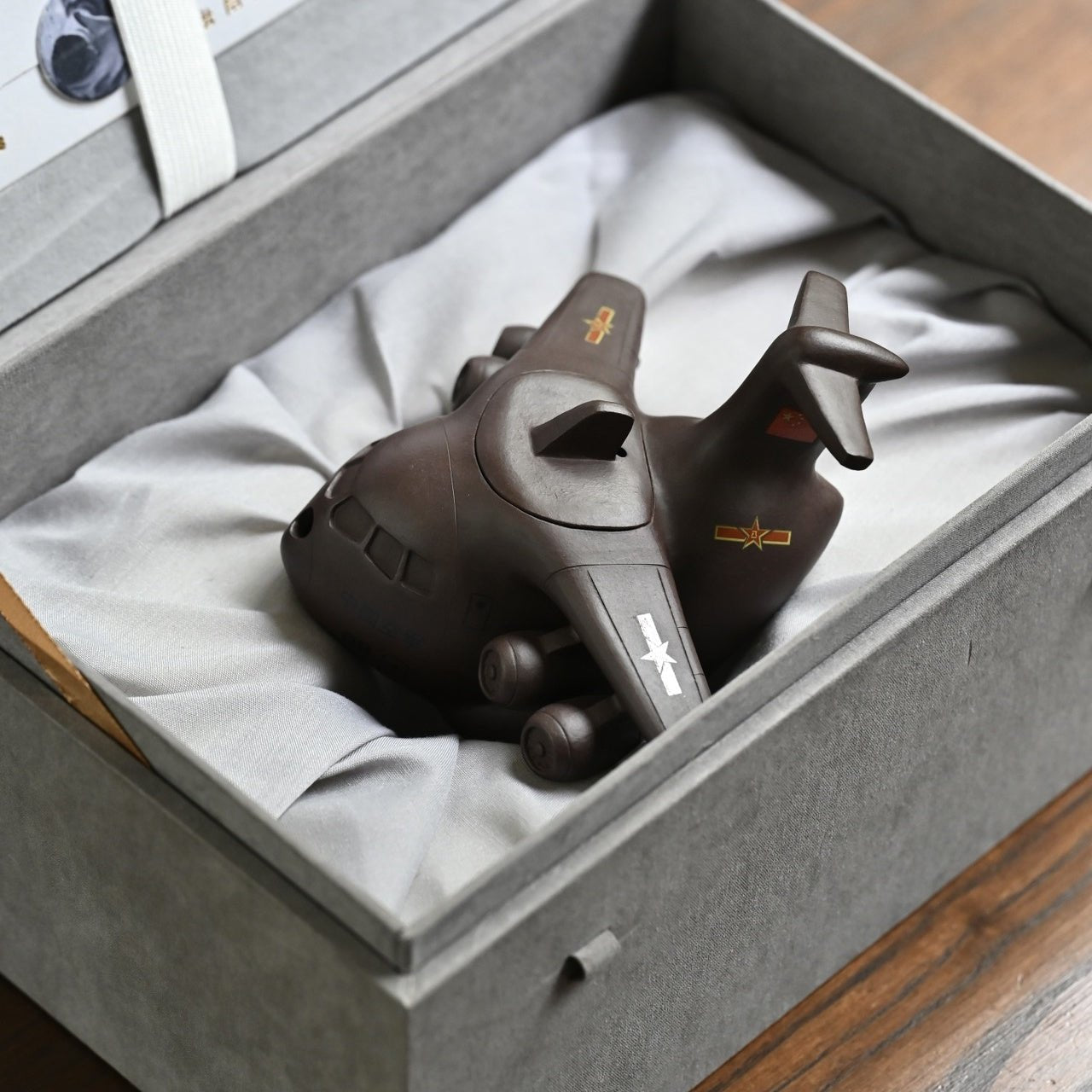 以國產運20大型運輸機為靈感的題材,展現昂揚之勢,呈現獨特的紫砂之美。