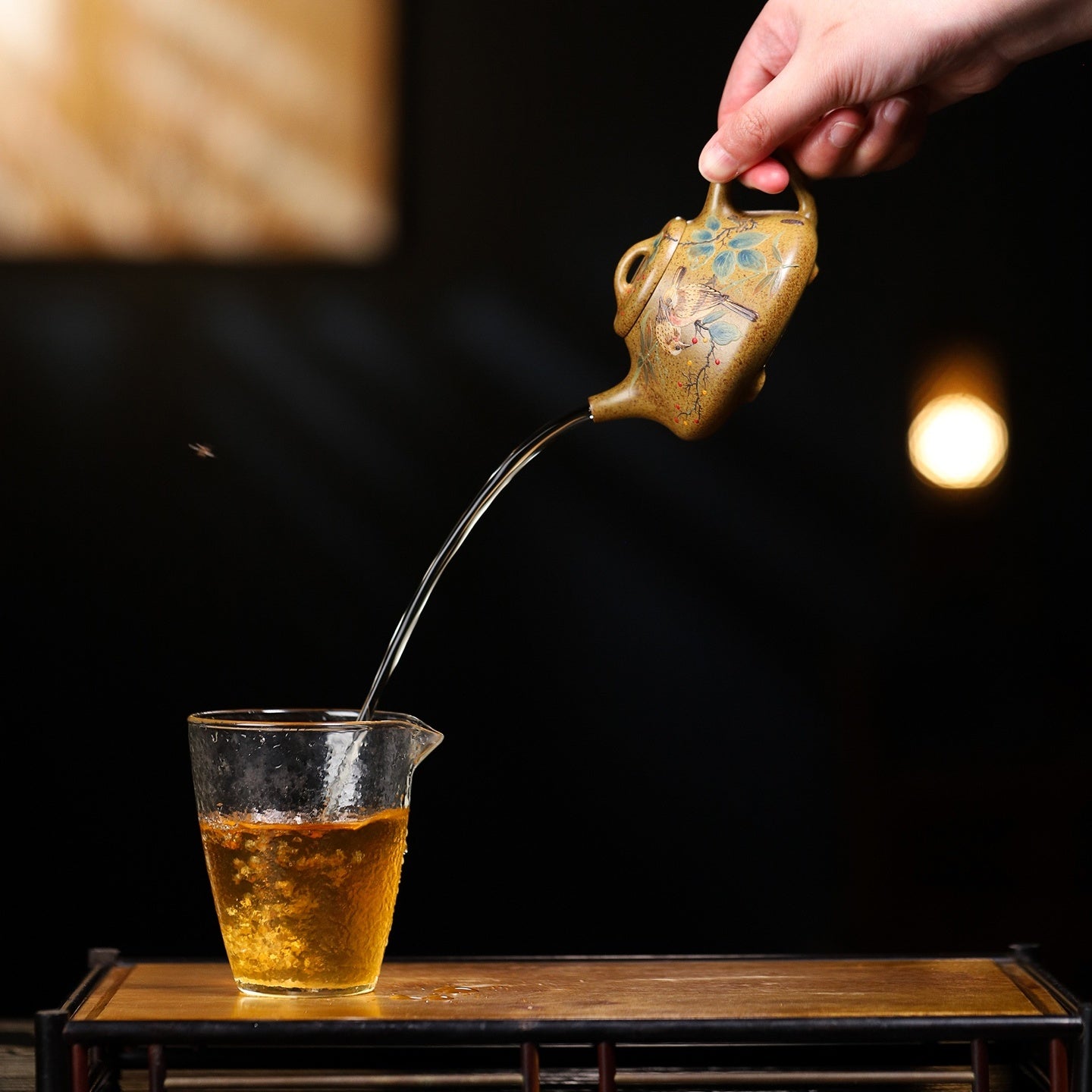【Warm the teapot before use】: First pour 40-50 degree water, pick up the teapot, shake it, so that the teapot body is evenly heated, so that the teapot is warm, pour the water, then pour boiling water, shake it again, and pour it out. This process is to make the teapot body evenly heated and can clean and disinfect the teapot body by the way.