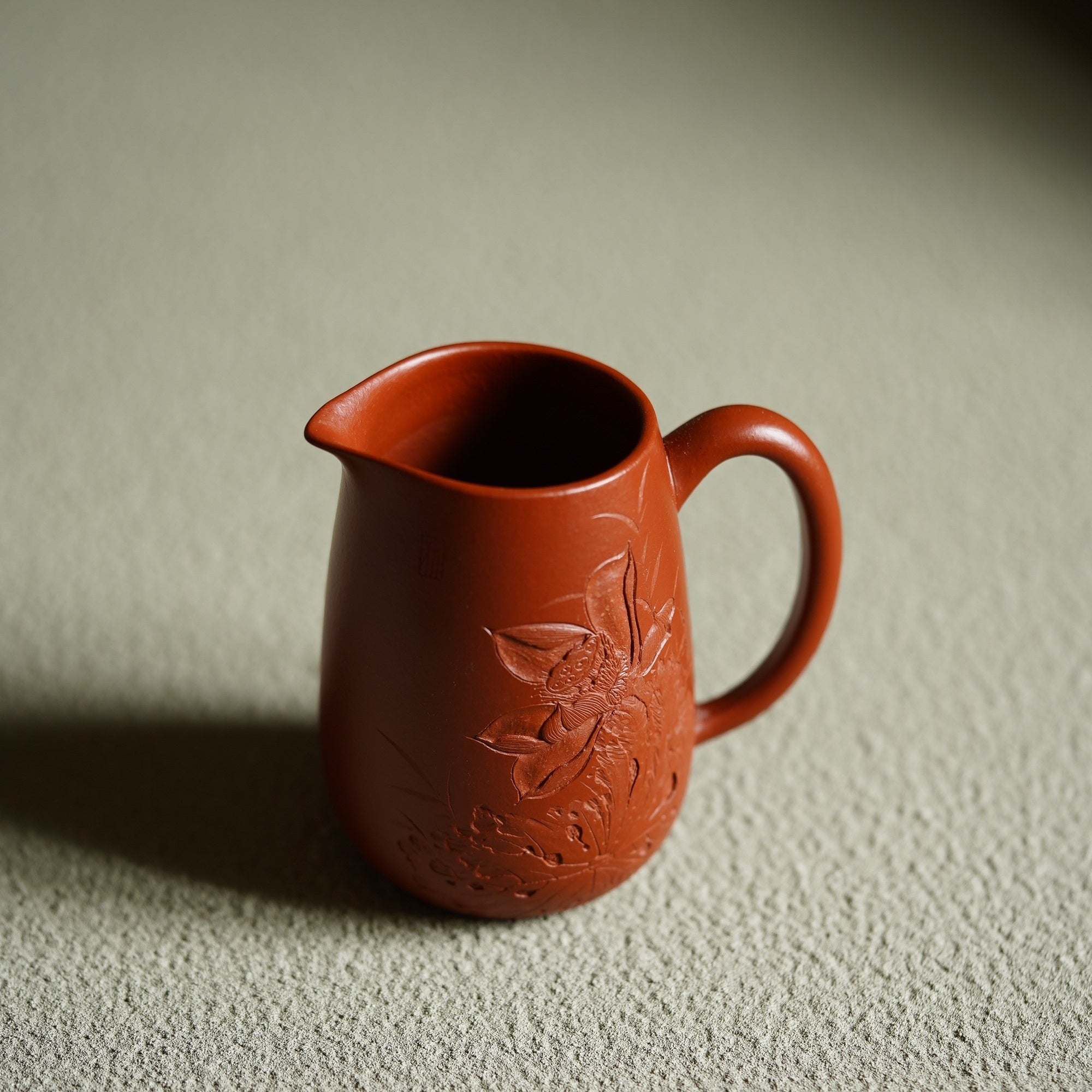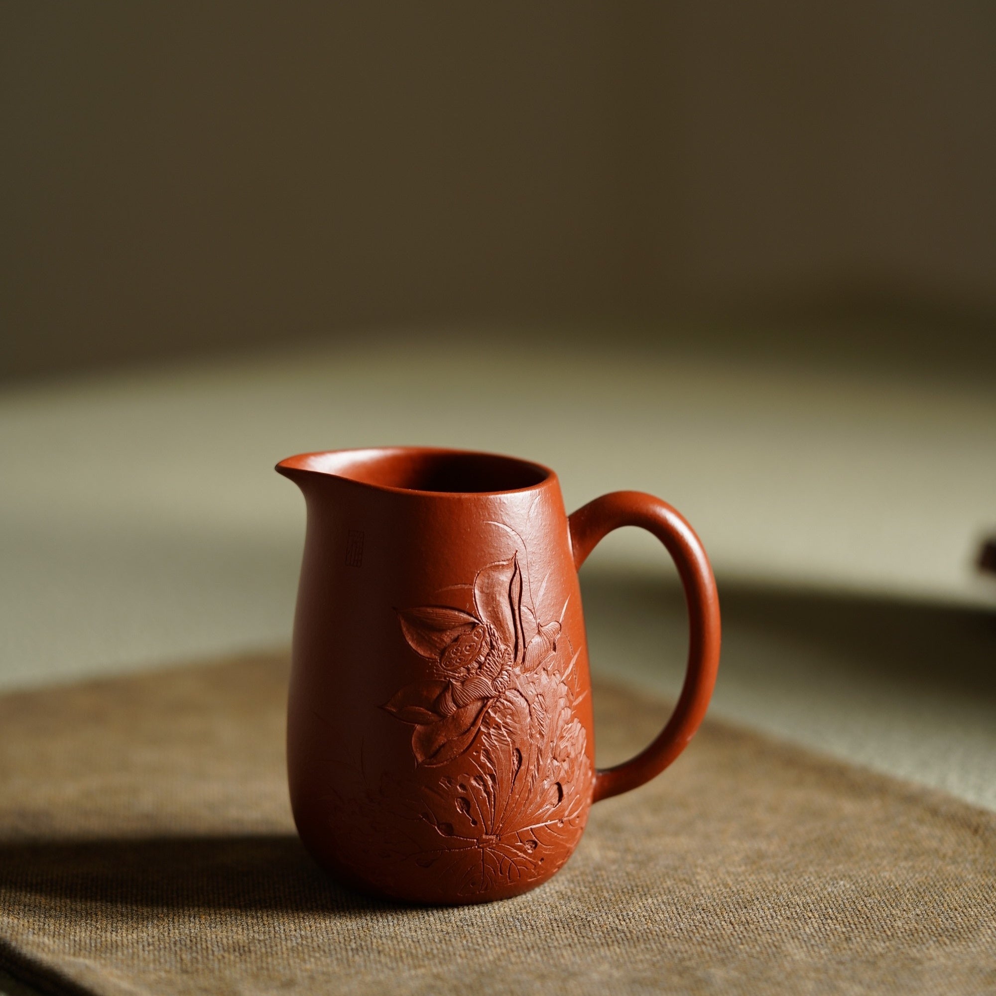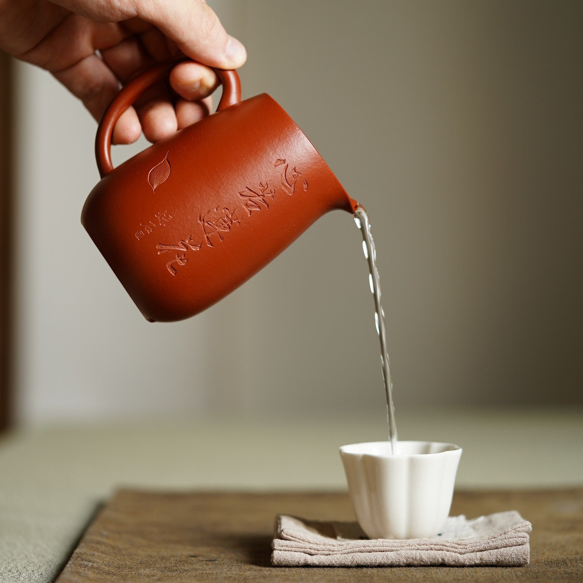 Crafted from red clay, the lotus is meticulously carved in relief, creating a lifelike effect. As a pot of tea pours, the lotus dances with the fragrance of the tea. This small vessel holds a world of its own; holding it evokes the tranquility of a Jiangnan rain.