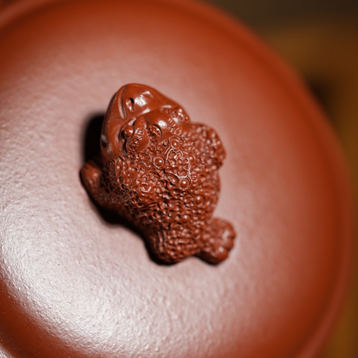 The body of this pot is naturally full and rich, with a strong three-dimensional sense and unique charm. The golden toad on the pot button is finely carved, adding a warm and elegant atmosphere. As the saying goes, "Those who get the golden toad will be rich." This auspicious creature dormant on the gall of the Gongchun tree is not only lifelike, but also conveys auspicious and beautiful meanings. The body of the pot is sculpted with bamboo, which has been used to mean "rising step by step" since ancient times.