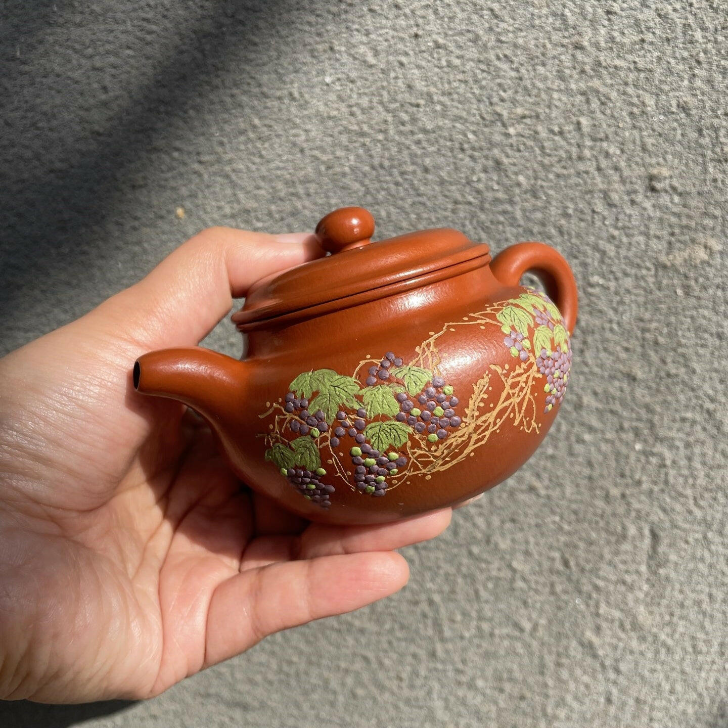 The online photos do not do justice to the actual teapot which was very well made and the details are exquisite. I feel that the firing was optimal which brought the feel of the set very well.