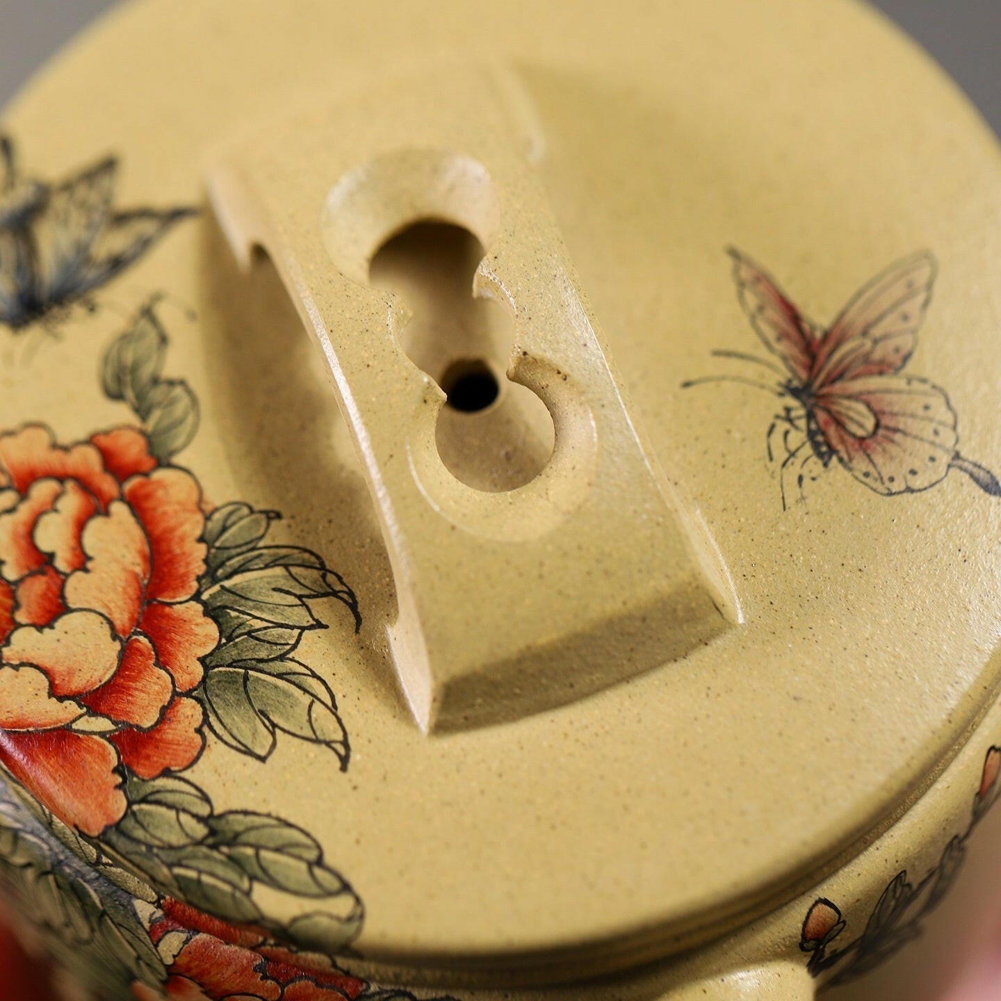 The online photos do not do justice to the actual teapot which was very well made and the details are exquisite. I feel that the firing was optimal which brought the feel of the set very well.