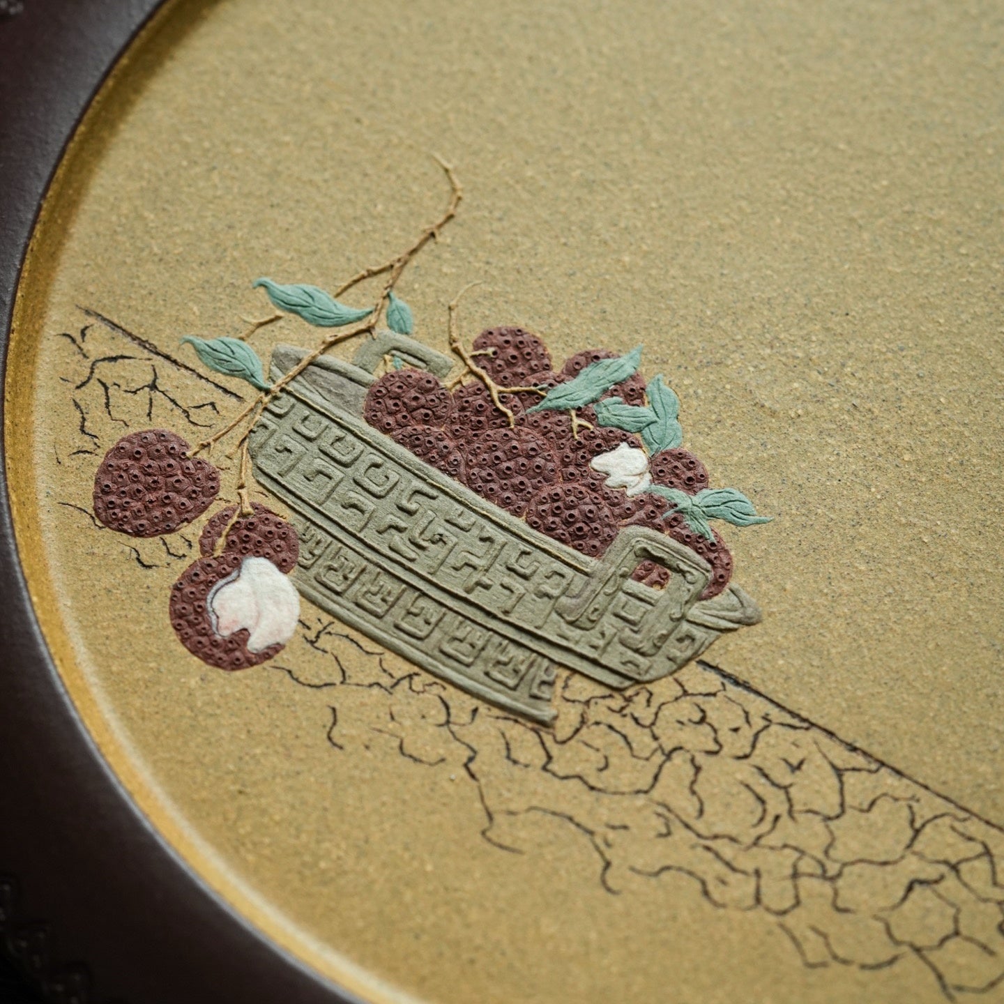當賞盤賞玩,盤面精緻畫面,似把夏日鮮果、古樸雅趣凝於其中,置於案頭,自成一方微型山水,供人細細品賞。
