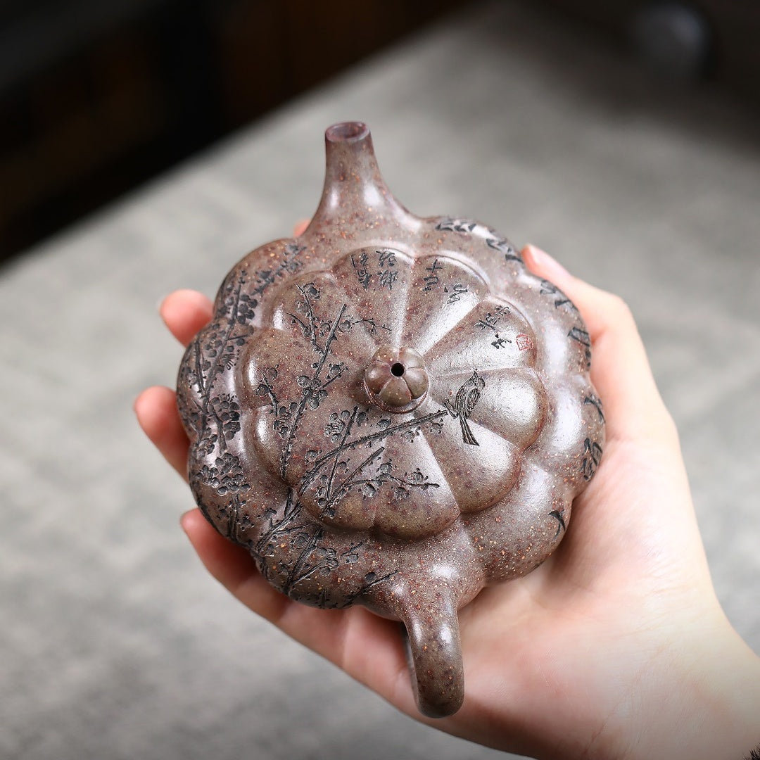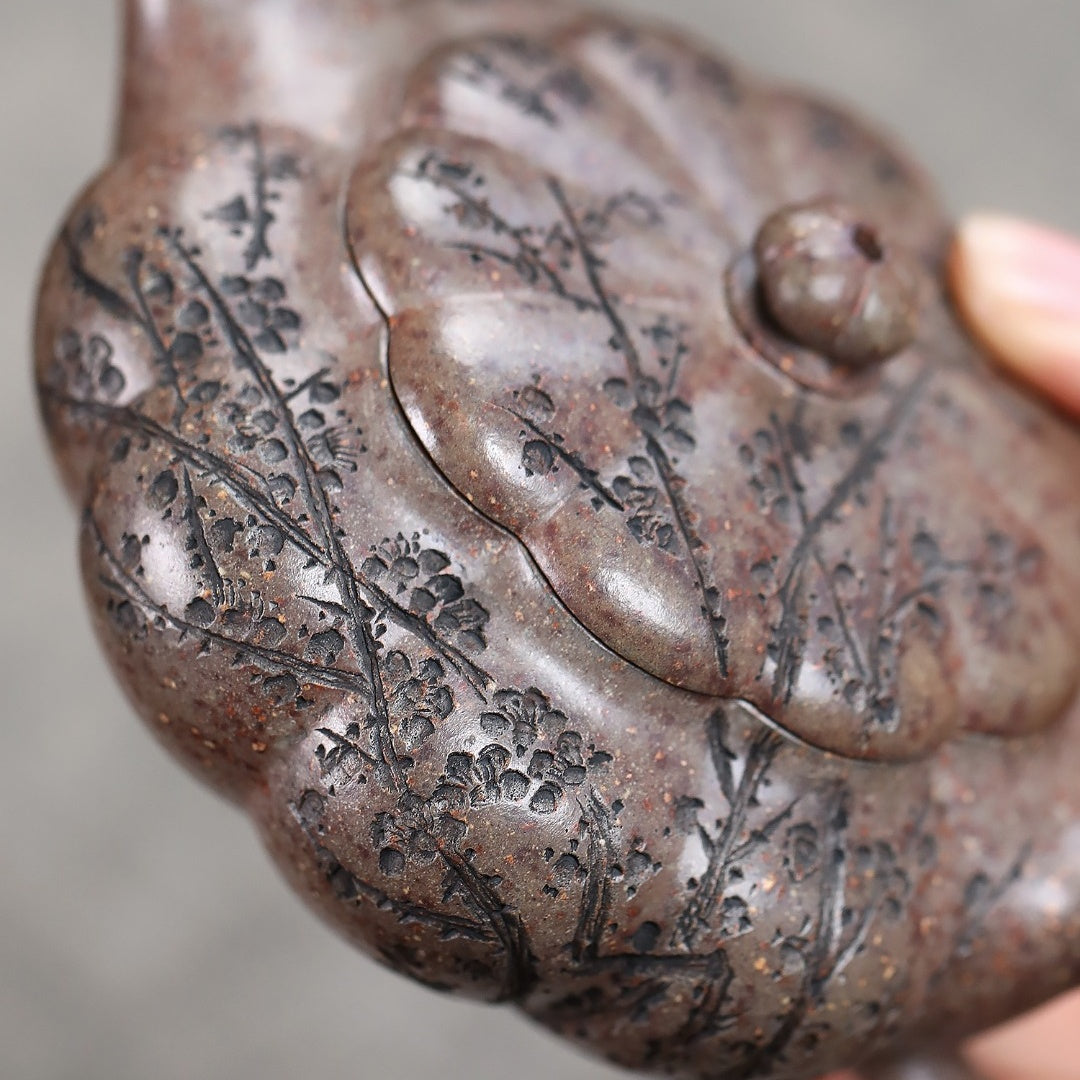 The body of the pot is engraved with a picture of the cold plum blossoms of "Spring to the branches“. Don't buy the poem "On the way back, I will smell the plum blossoms. Spring is already very much on the branches."”.The whole device of viewing is a practical boutique, as well as a work of art to appreciate and play with. It is recommended!