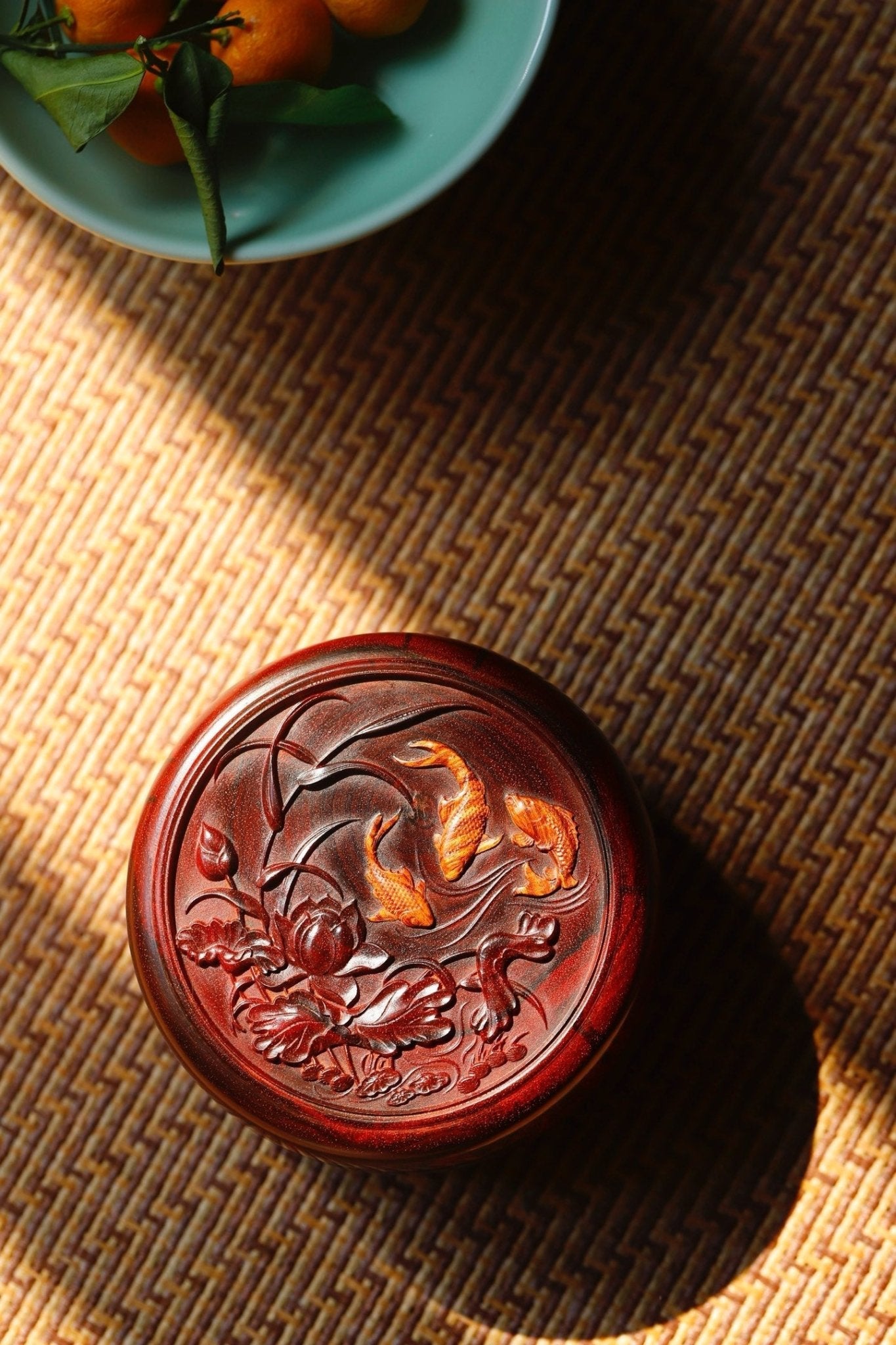 The blooming lotus is full of life and the fish are jumping. The beauty of natural harmony. Paired with the ultimate handicrafts, the lively and joyful scene is inlaid with Hainan huanghuali fish. The craftsmanship is exquisite and lifelike, making the ornamental value and collection value coexist.