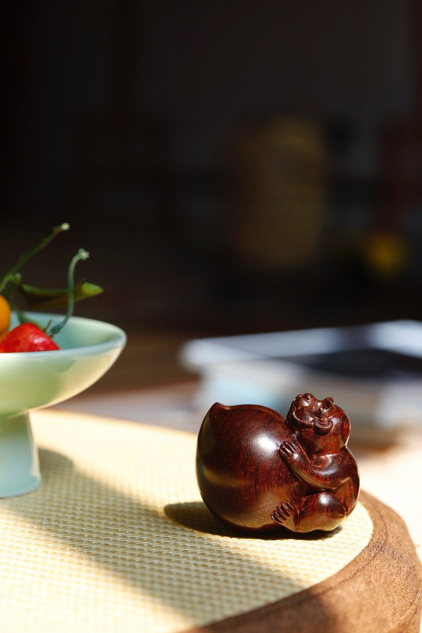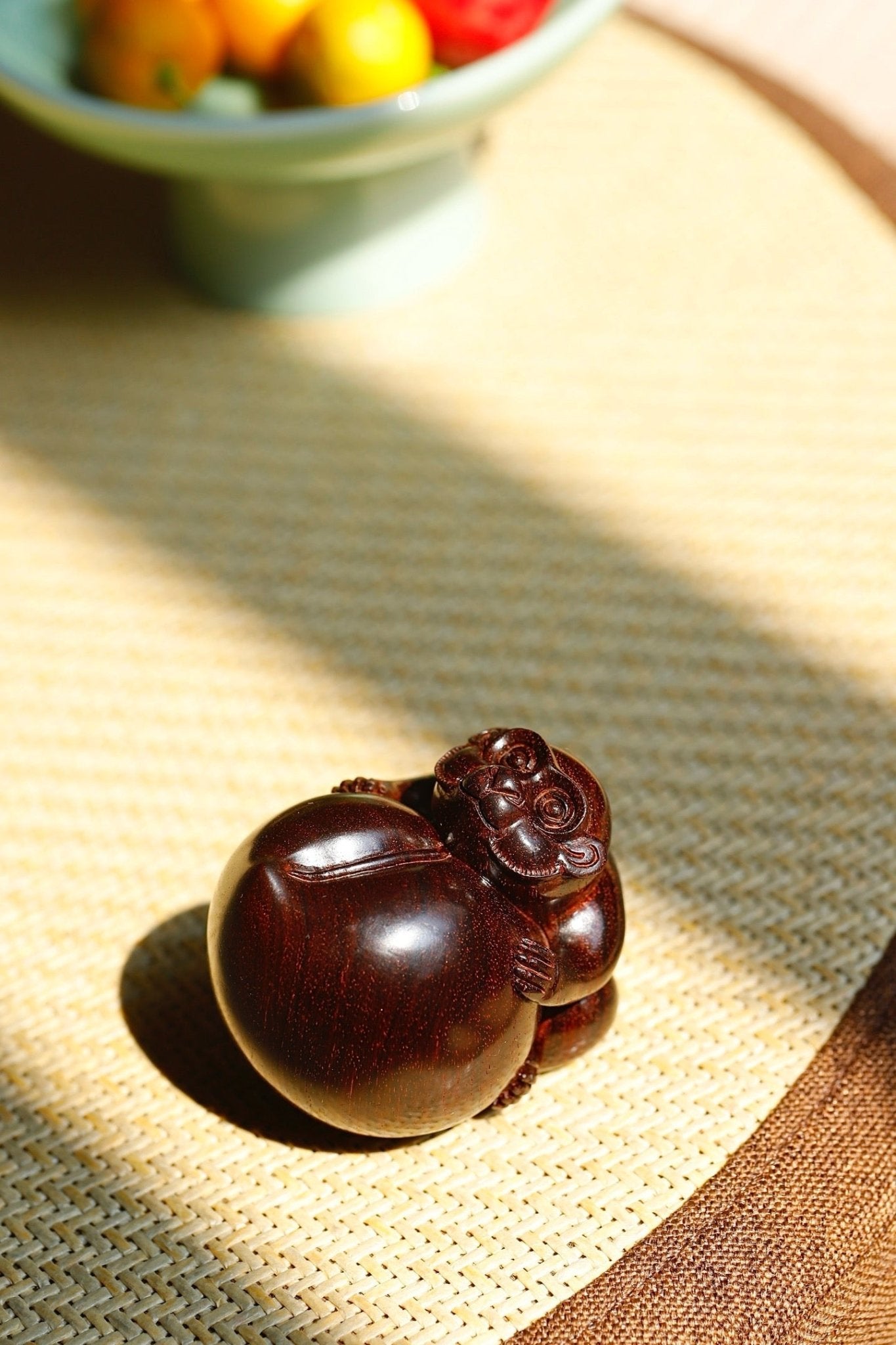 【Ling Hou Xian Shou】Ornaments "Monkey" and "Hou" have the same pronunciation. Symbolizes official luck. Tao means longevity. It means a prosperous official career and a long life. It is taken from India's small-leaf red sandalwood and is handmade by Hunan craftsmen. 【Material】 Small-leaf rosewood 【Size】 6.2*4.8*5.3cm, weight 93 g 👉There is only one product. Customers who are interested in purchasing can contact our online customer service to obtain inventory. Thank you