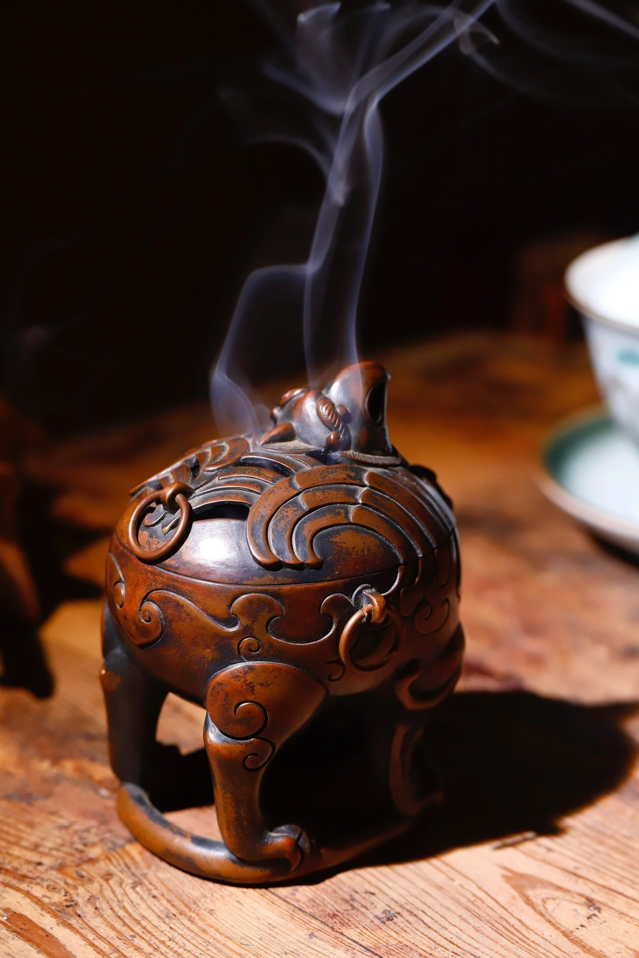 器形典雅古樸,爐中香氣從朱雀口中繚繞飄出,