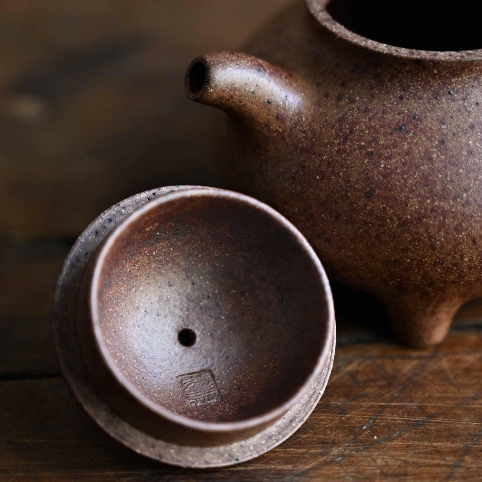 The body of the pot is in the shape of an ancient tripod, with equal thickness from top to bottom, but the line changes are clear. The three tripod legs are simple and round, steady and down-to-earth. The pressure cover is round and plump, the bridge-shaped button is simple and moving, and the ring decoration is smart and cute, with ancient charm.