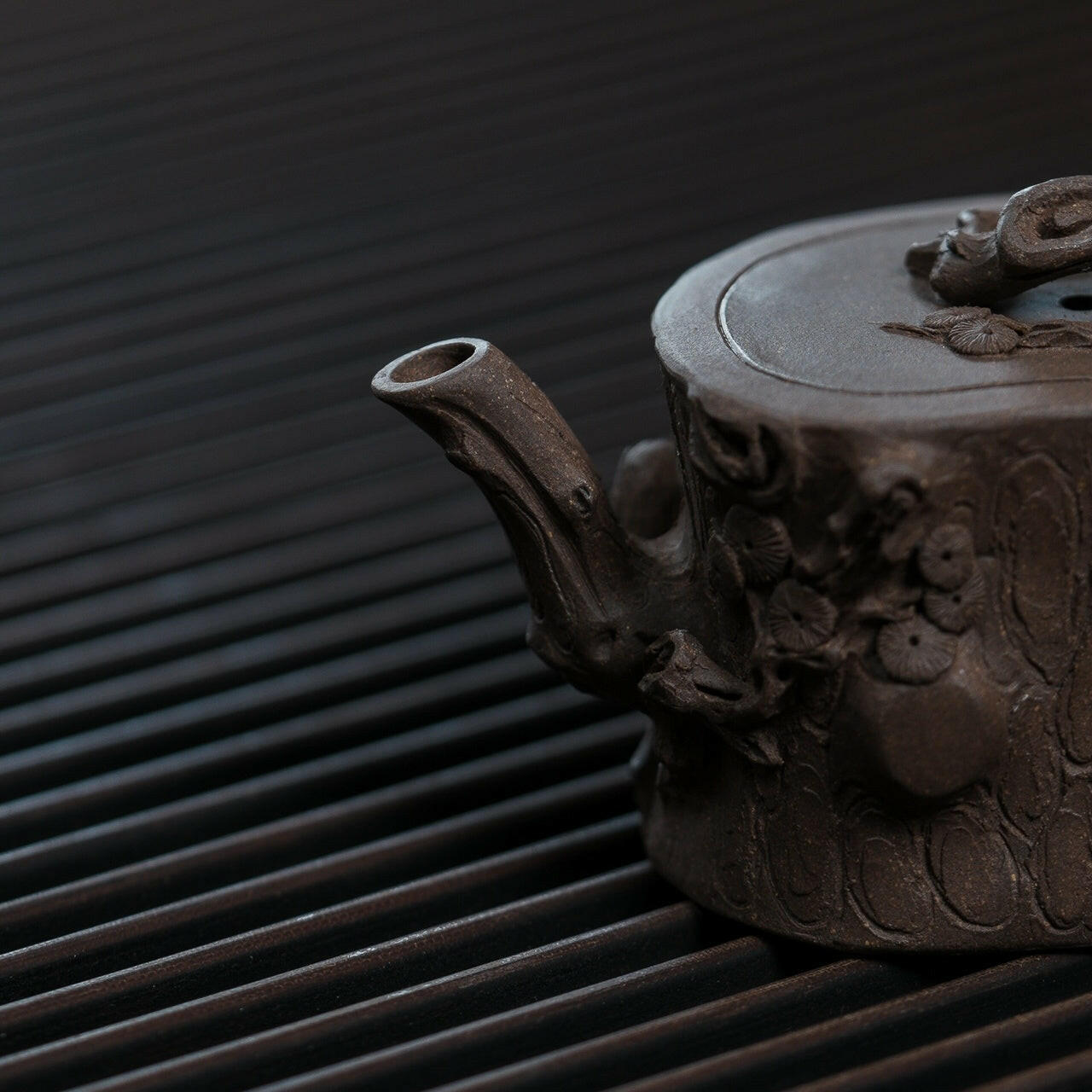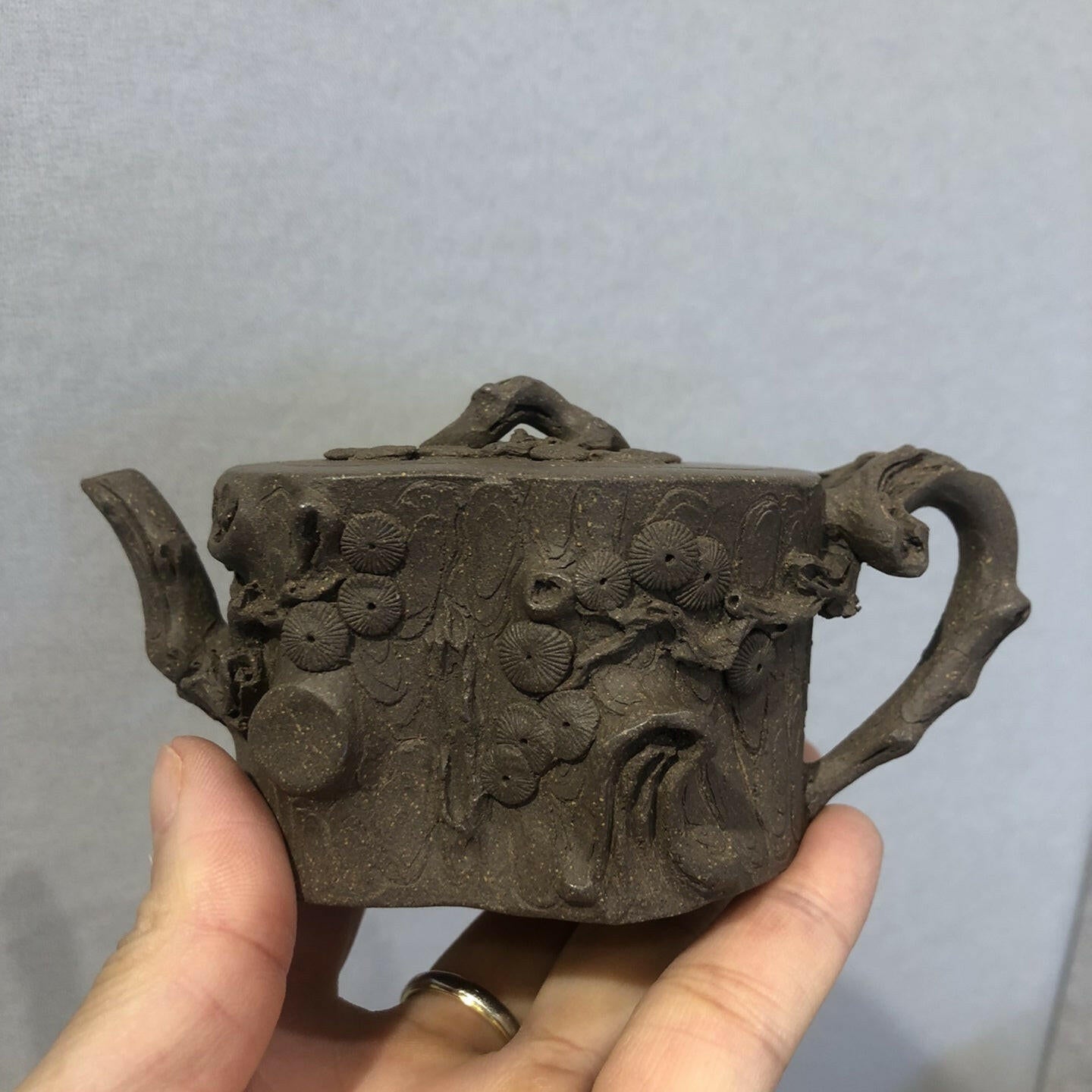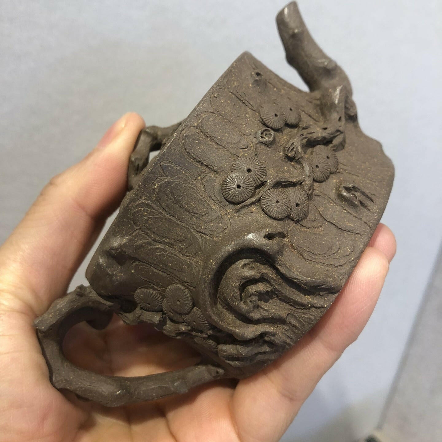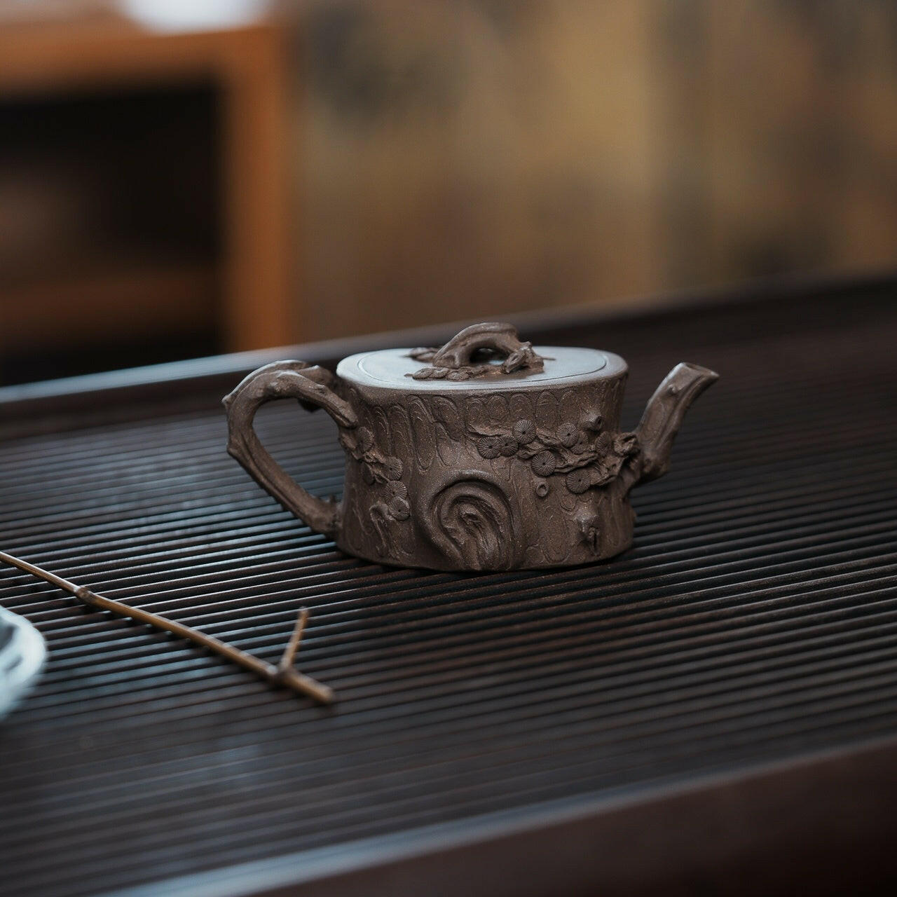 This pot is based on pine stumps, with harmonious matching of all parts, coordinated proportions, and full of bone feeling. It is shaped like a tree stump, and it looks like a tree stump. The inlaid lid fits tightly, like the tree rings, and complements the pot body. The connection between the pot knob and the handle is dignified and steady, with a coherent aura and natural bionics.